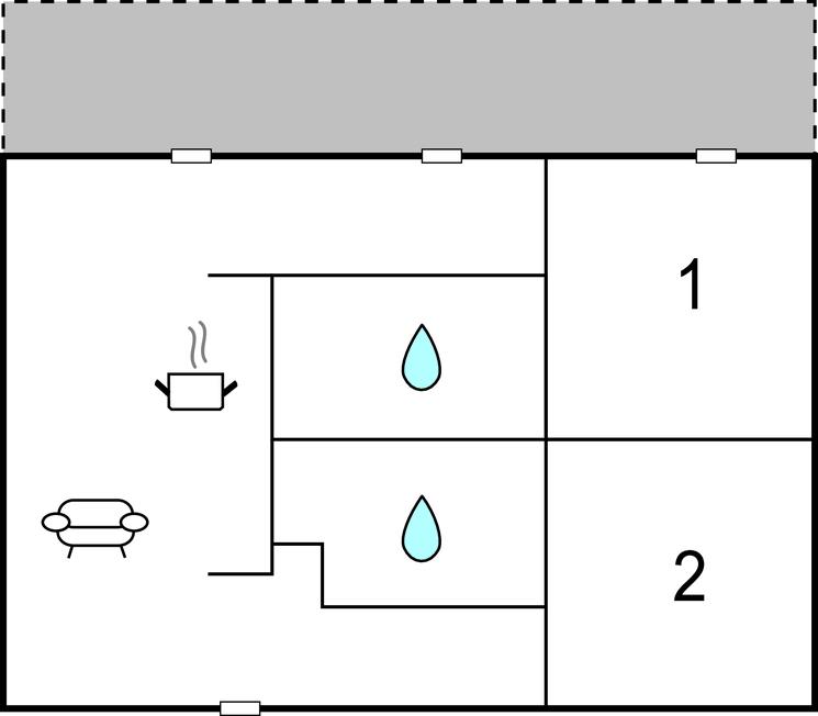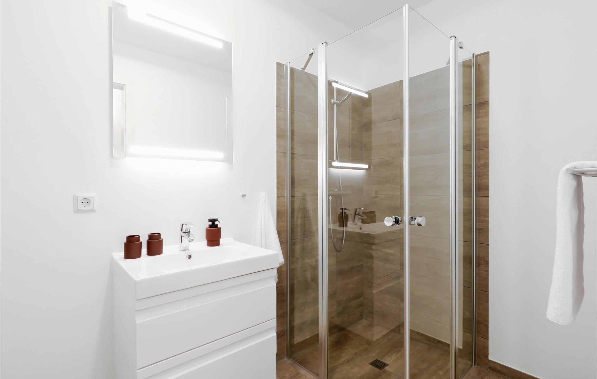 Badezimmer (nr. 2) - WC. Warmes und kaltes Wasser. Dusche