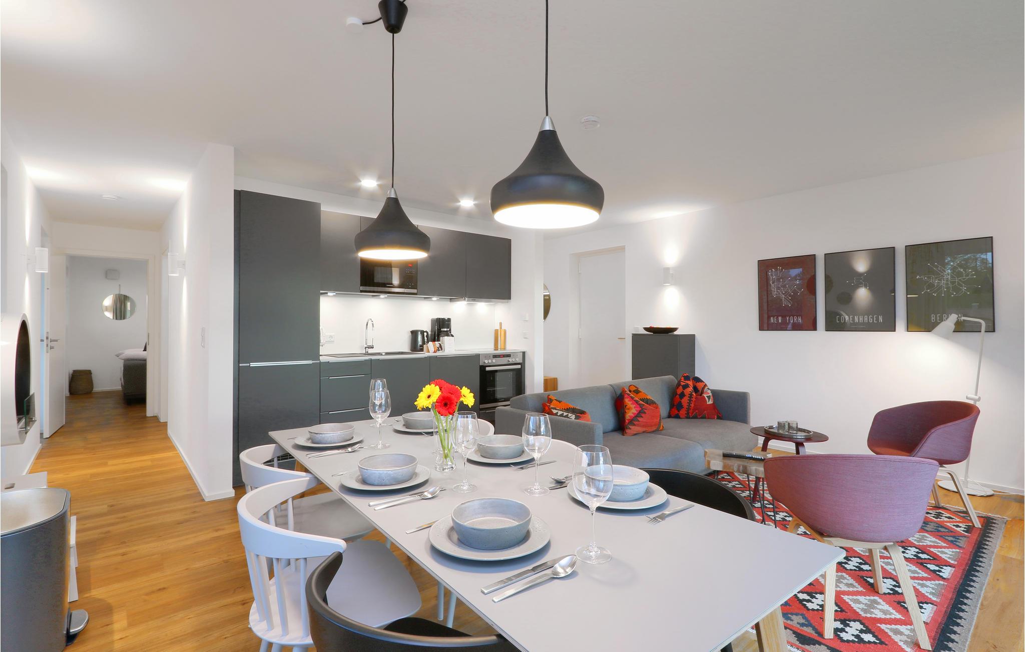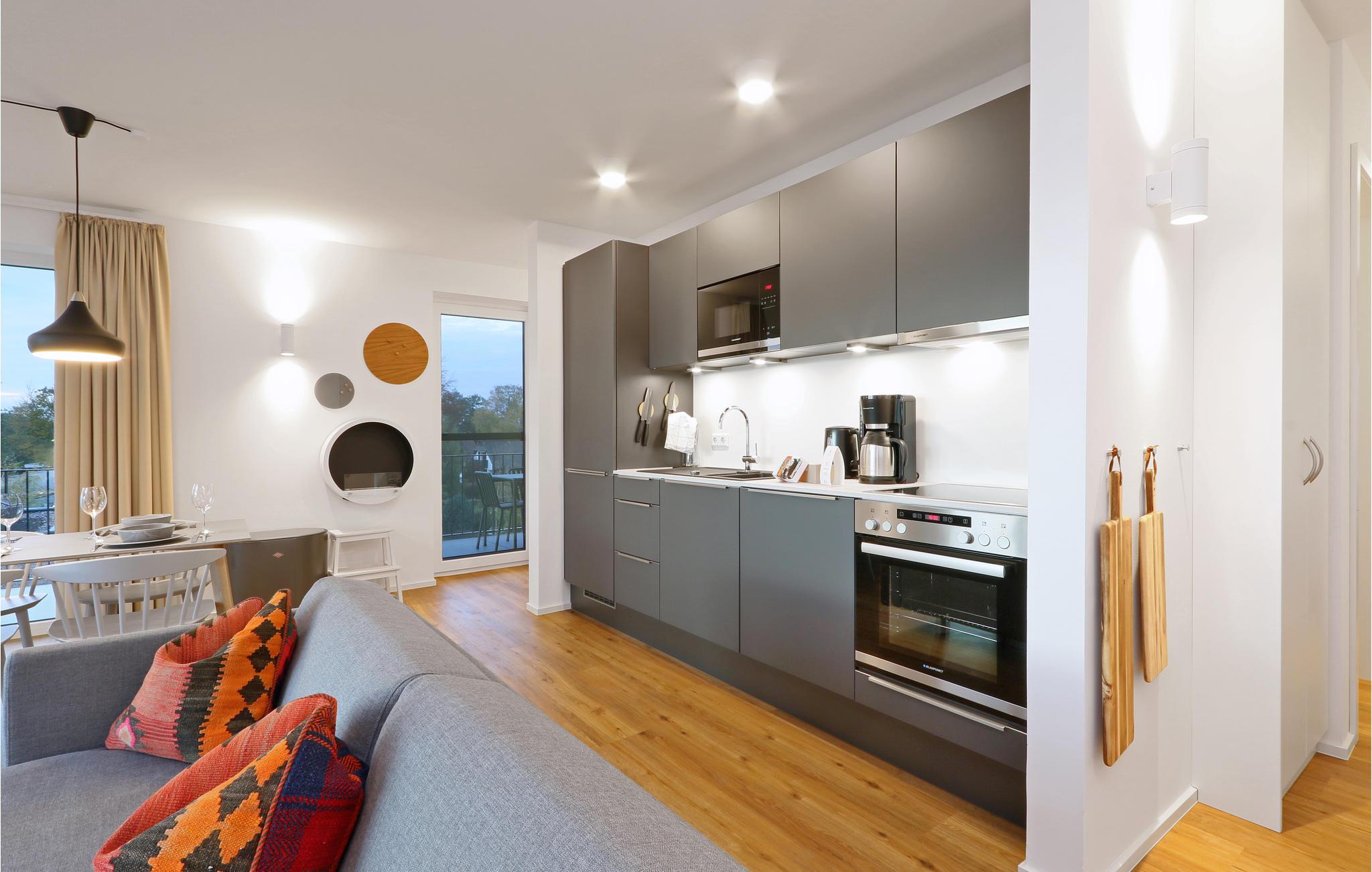 Willkommen in Ihrem Apartment, das Ihnen für bis zu 6 Personen ein gemütliches, wohnliches Ambiente mit Einrichtung im skandinavischen Design bietet. Sie finden dank Kamin eine behagliche Wärme vor, und können auf dem Balkon frische Luft schnappen. In der offenen Küche gelingt Ihnen beim Kochen für Freunde oder die Familie jedes Rezept.
