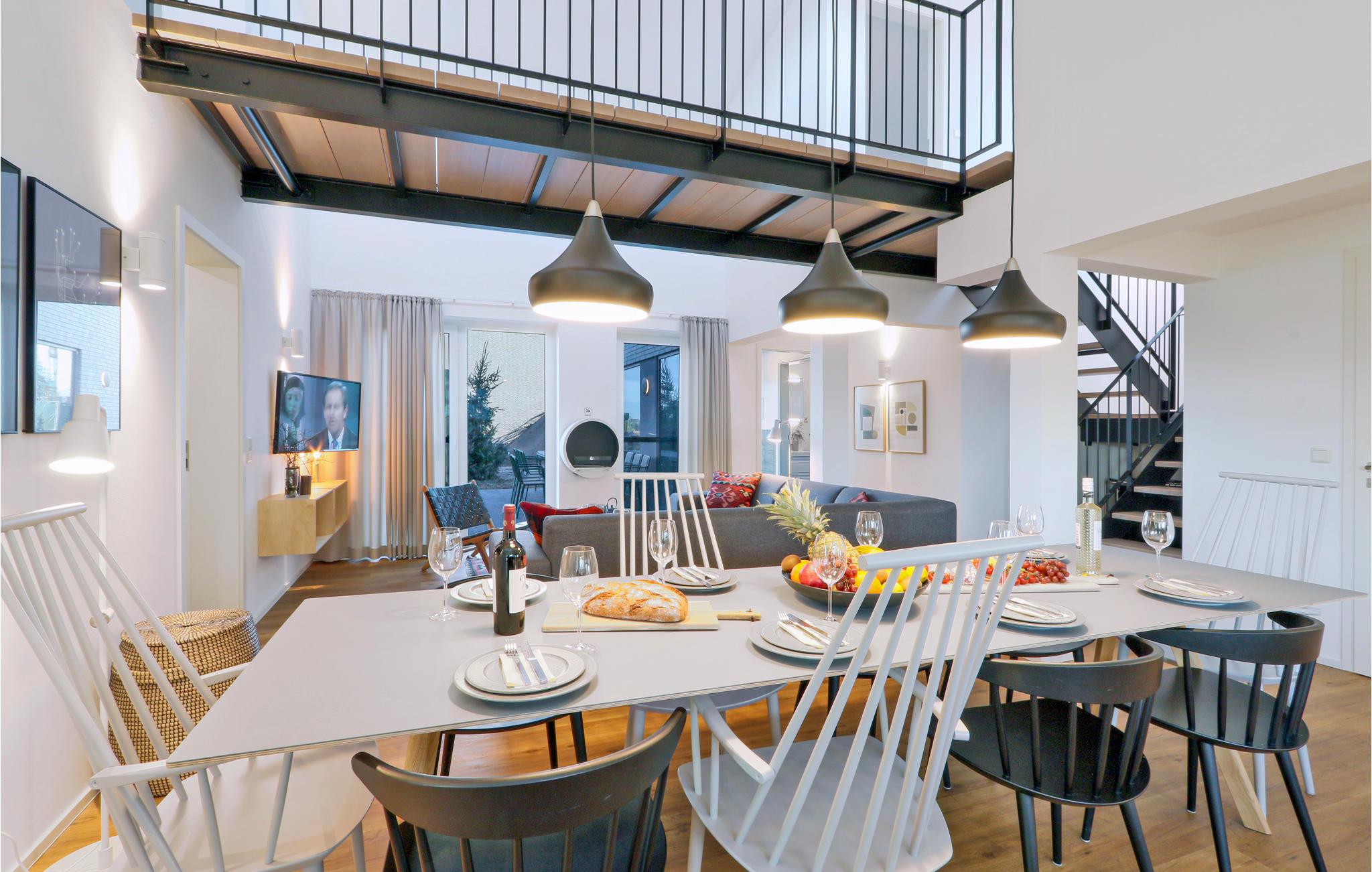 Willkommen in Ihrem Ferienhaus, das Ihnen als Familie mit Kindern oder als Freundeskreis ein gemütliches, wohnliches Ambiente im skandinavischen Einrichtungsstil bietet. Dank des eigenen Indoor-Pools und der Sauna weht ein Hauch von Luxus durch dieses Haus, dessen Wohn- und Essbereich im ersten Stockwerk Sie dank der offenen Galerie mit Loft-Charakter empfängt. Die offene Küche lädt zum Kochen und Verweilen ein, während sich auf den zwei Terrassen immer ein sonniges Plätzchen finden lässt – Bis zu 10 Gäste finden hier, dank 5 Schlaf- und 4 Badezimmern immer genügend Privatsphäre. Die Einrichtung im skandinavischen Design ist durchweg hochwertig und lässt keine Wünsche offen.