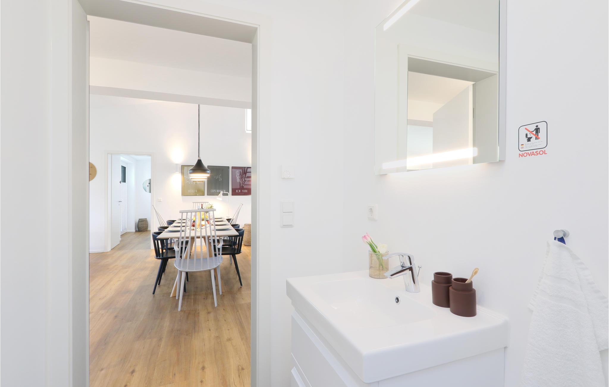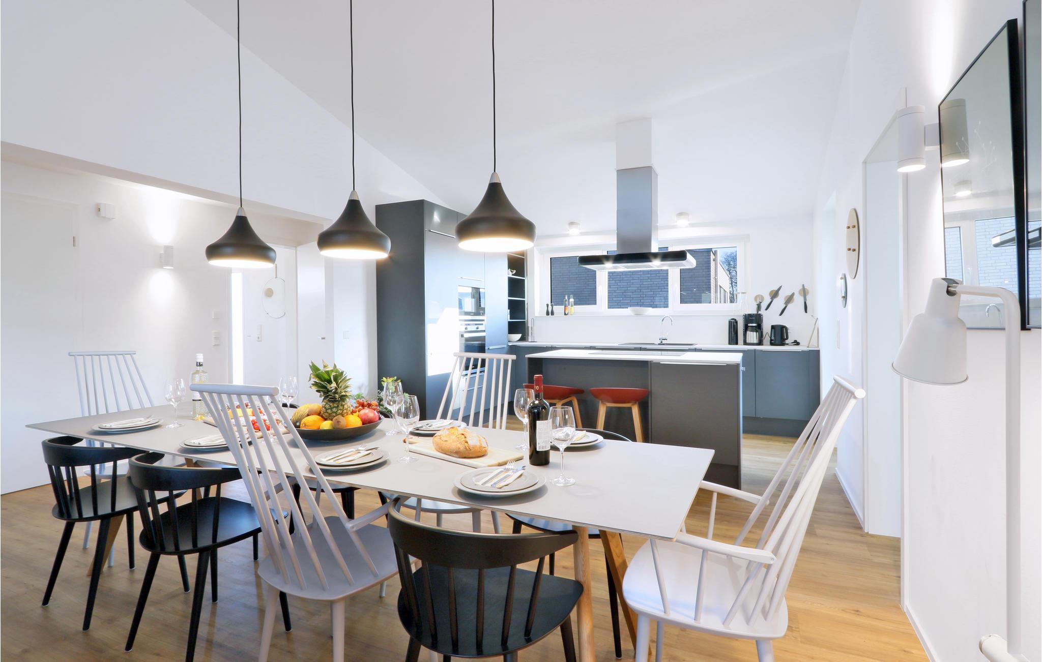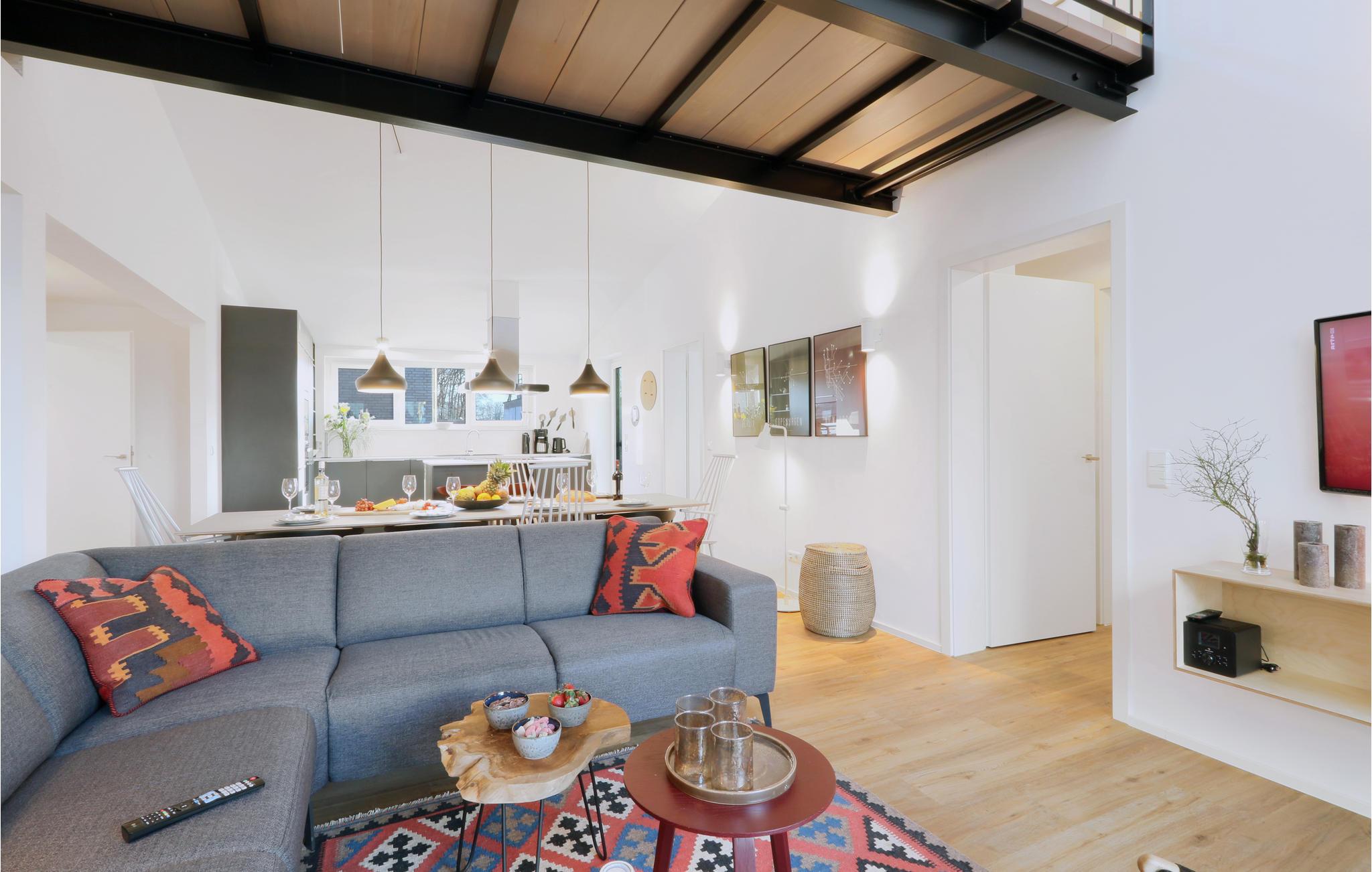 Willkommen in Ihrem Ferienhaus, das Ihnen als Familie mit Kindern oder als Freundeskreis ein gemütliches, wohnliches Ambiente im skandinavischen Einrichtungsstil bietet. Dank des eigenen Indoor-Pools und der Sauna weht ein Hauch von Luxus durch dieses Haus, dessen Wohn- und Essbereich im ersten Stockwerk Sie dank der offenen Galerie mit Loft-Charakter empfängt. Die offene Küche lädt zum Kochen und Verweilen ein, während sich auf den zwei Terrassen immer ein sonniges Plätzchen finden lässt – Bis zu 10 Gäste finden hier, dank 5 Schlaf- und 4 Badezimmern immer genügend Privatsphäre. Die Einrichtung im skandinavischen Design ist durchweg hochwertig und lässt keine Wünsche offen.