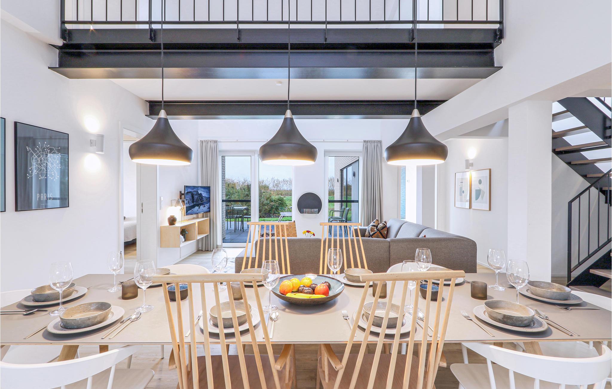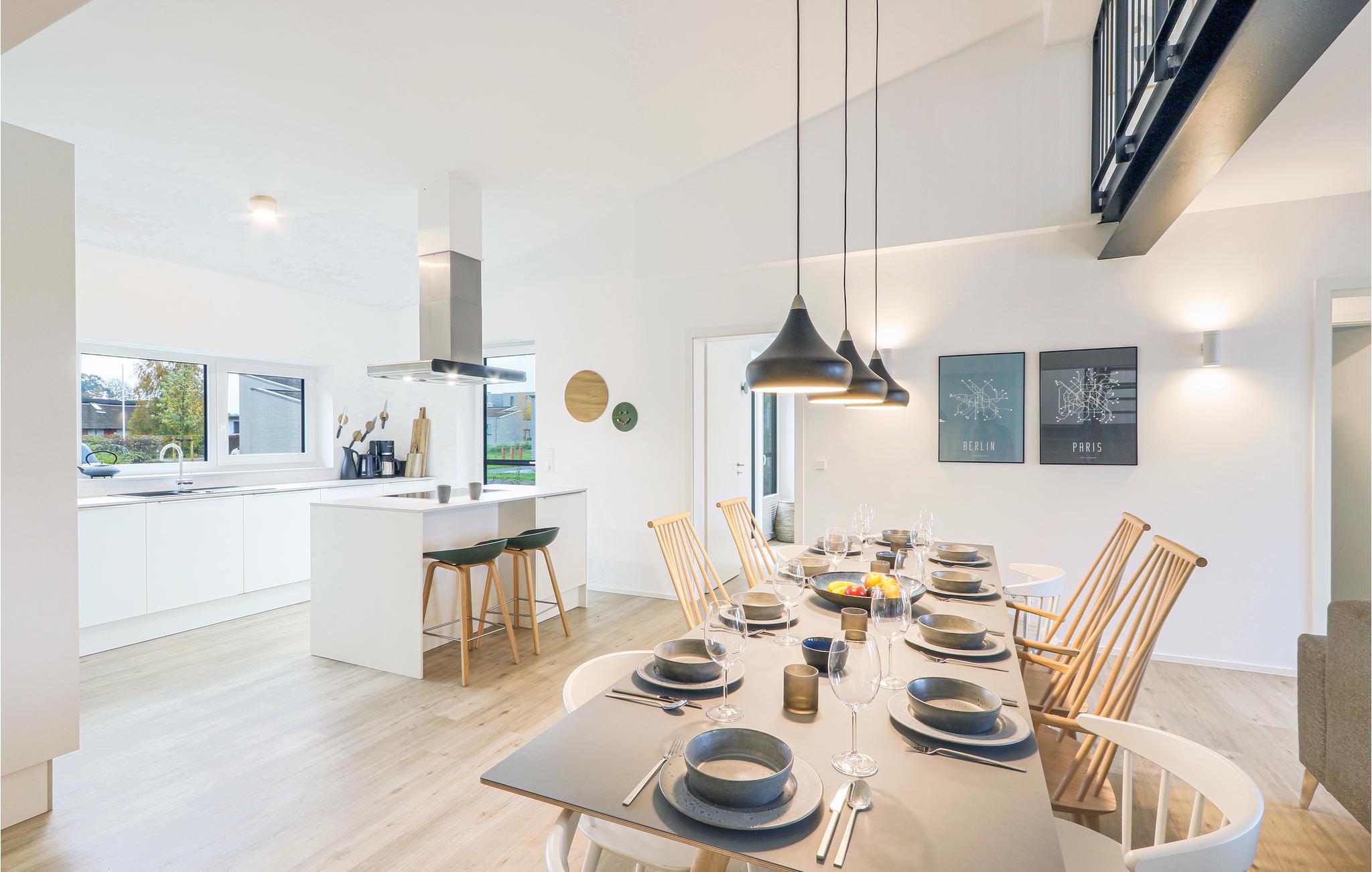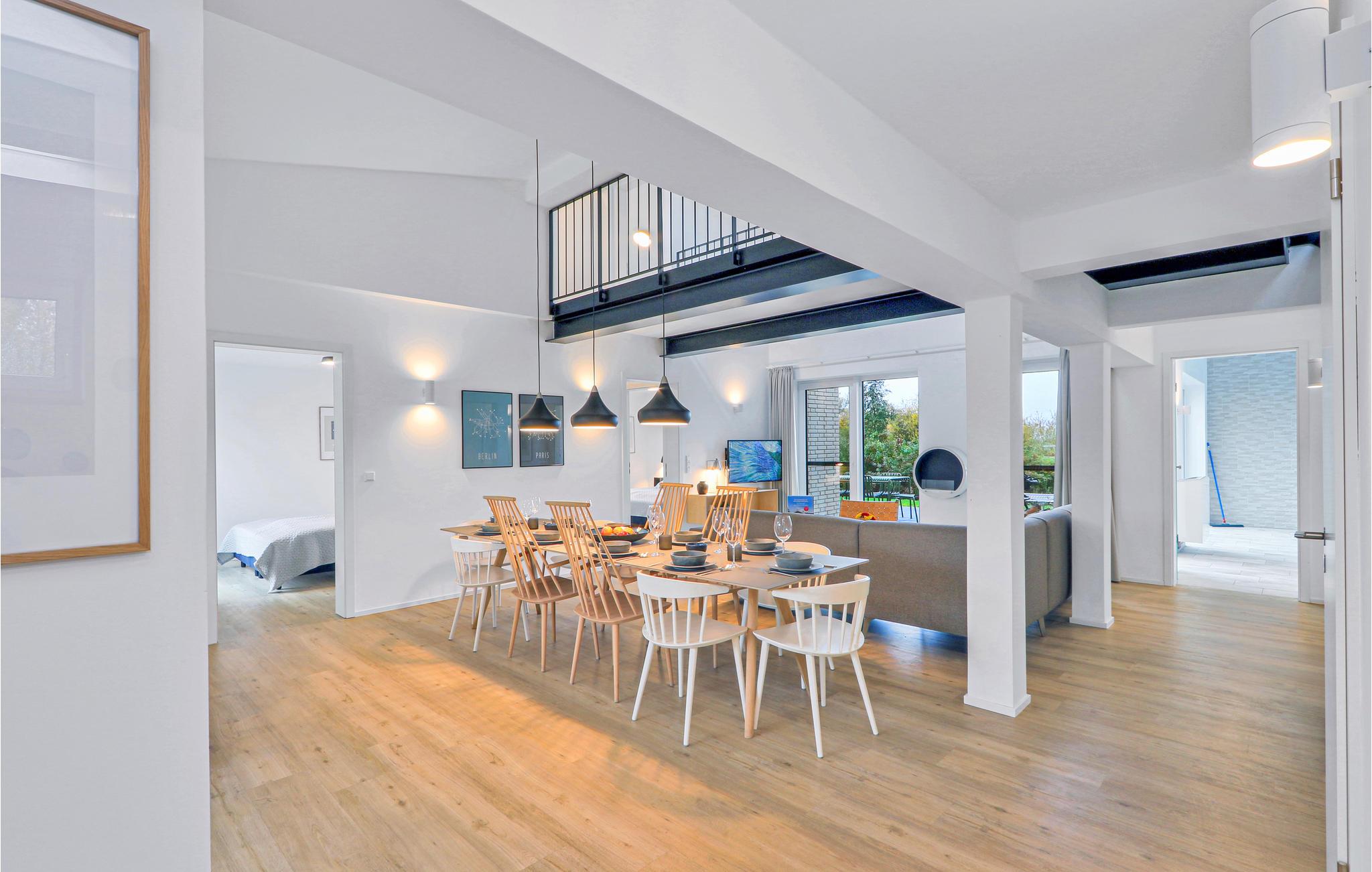 Willkommen in Ihrem Ferienhaus, das Ihnen als Familie mit Kindern oder als Freundeskreis ein gemütliches, wohnliches Ambiente im skandinavischen Einrichtungsstil bietet. Dank des eigenen Indoor-Pools und der Sauna weht ein Hauch von Luxus durch dieses Haus, dessen Wohn- und Essbereich im ersten Stockwerk Sie dank der offenen Galerie mit Loft-Charakter empfängt. Die offene Küche lädt zum Kochen und Verweilen ein, während sich auf den zwei Terrassen immer ein sonniges Plätzchen finden lässt – Bis zu 10 Gäste finden hier, dank 5 Schlaf- und 4 Badezimmern immer genügend Privatsphäre. Die Einrichtung im skandinavischen Design ist durchweg hochwertig und lässt keine Wünsche offen.