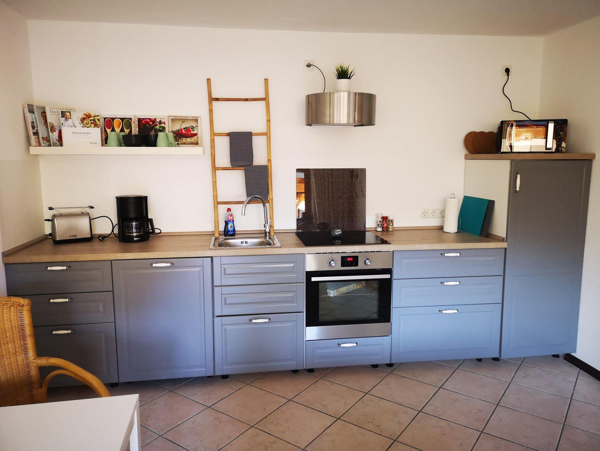 Der Balkon liegt in ruhiger Innenhoflage. Genießen Sie den Ausblick mit unseren erlesenen Bioweinen. In der Küche finden Sie neben einem Kühlschrank mit Gefrierfach auch eine Geschirrspülmaschine sowie ein Backofen vor. Zudem sind Haushaltsgeräte wie Toaster und Wasserkocher vorhanden. Im Wohnraum befindet sich ein großer Flachbildschirm SAT-TV mit Esstisch.