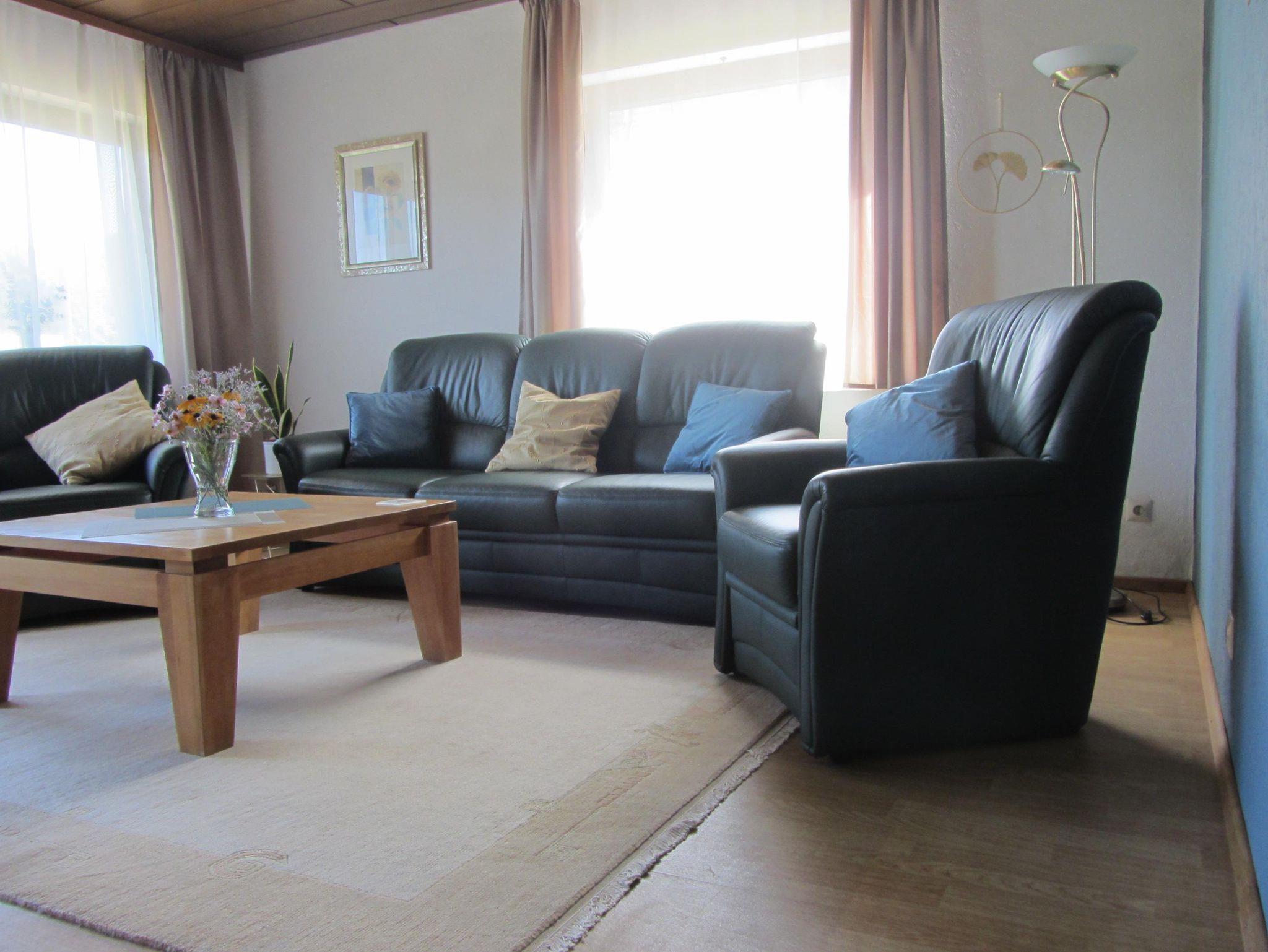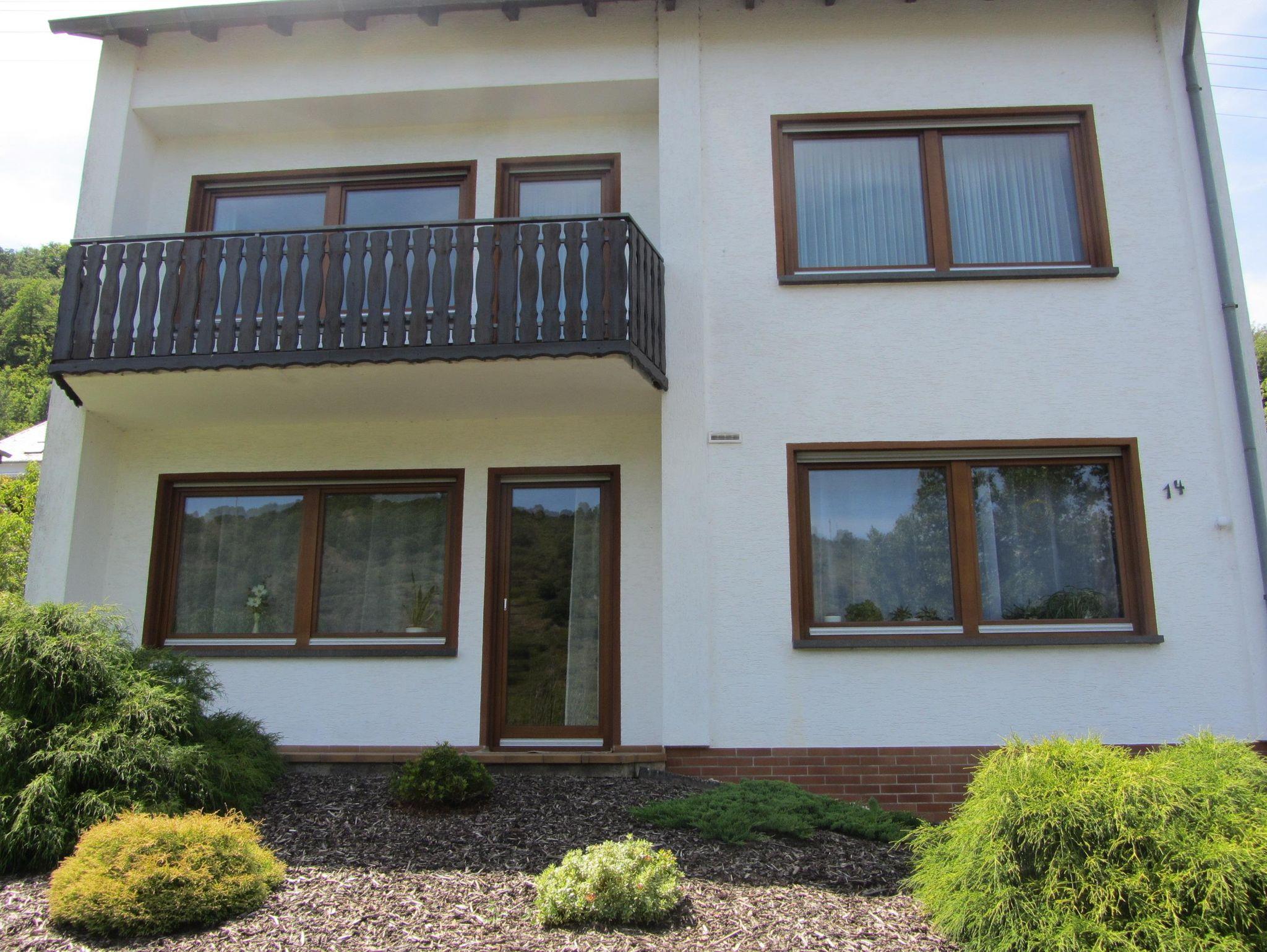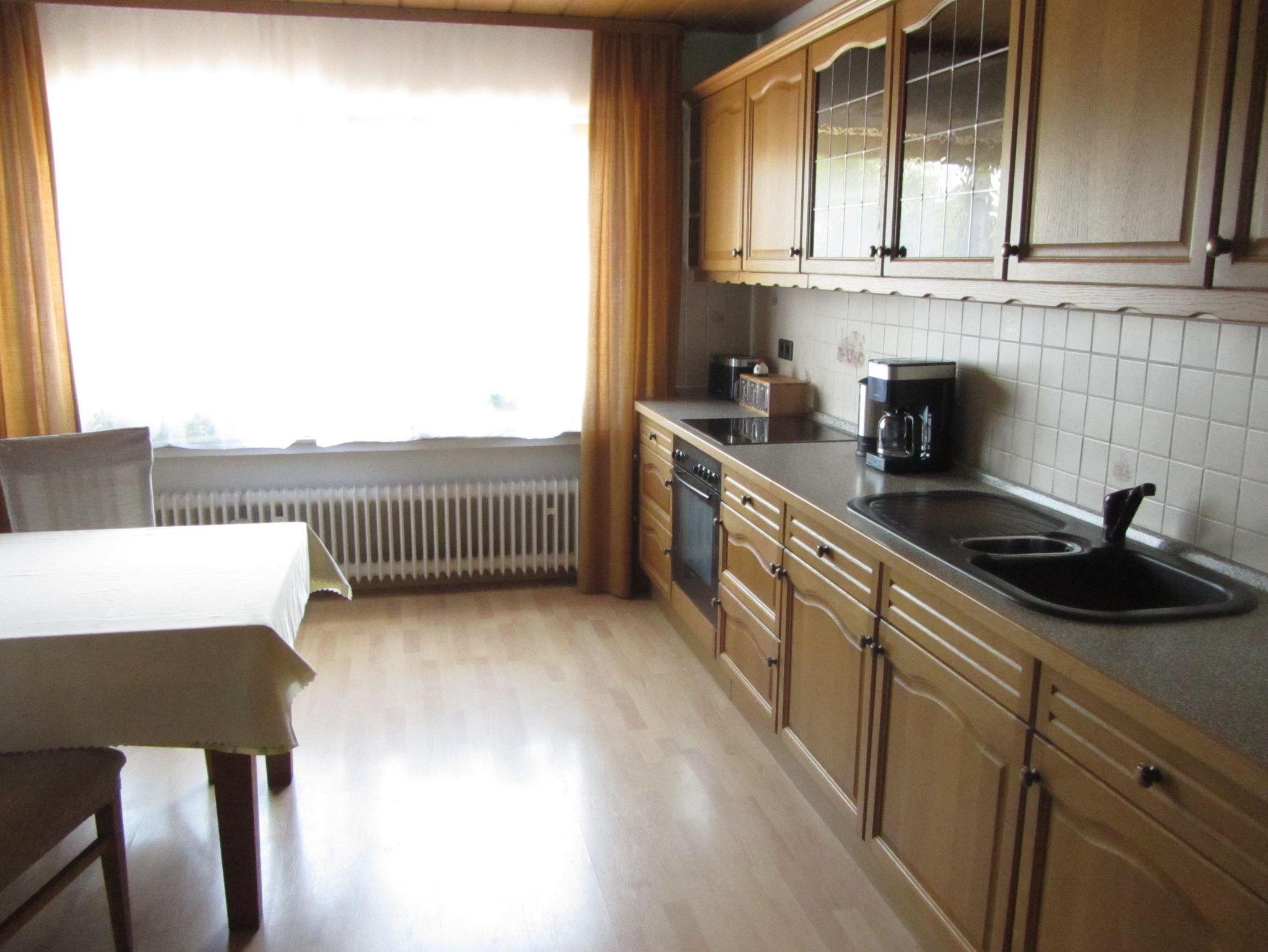 Die im Erdgeschoss gelegene Ferienwohnung bietet auf ca. 68 m² eine geräumige und gut ausgestattete Küche (u. a. Kaffeemaschine, Toaster, Kühlschrank mit Gefrierfach und Sat-TV), ein Wohnzimmer (mit internetfähigem TV), ein Schlafzimmer mit Doppelbett sowie ein Tageslichtbad (WC/Dusche). Vom Wohnzimmer aus haben Sie einen direkten Zugang zum Freisitz mit Burgblick. Ihr Auto hat einen Platz direkt am Haus. Ebenso können Sie mitgebrachte Fahrräder in der Garage unterstellen.