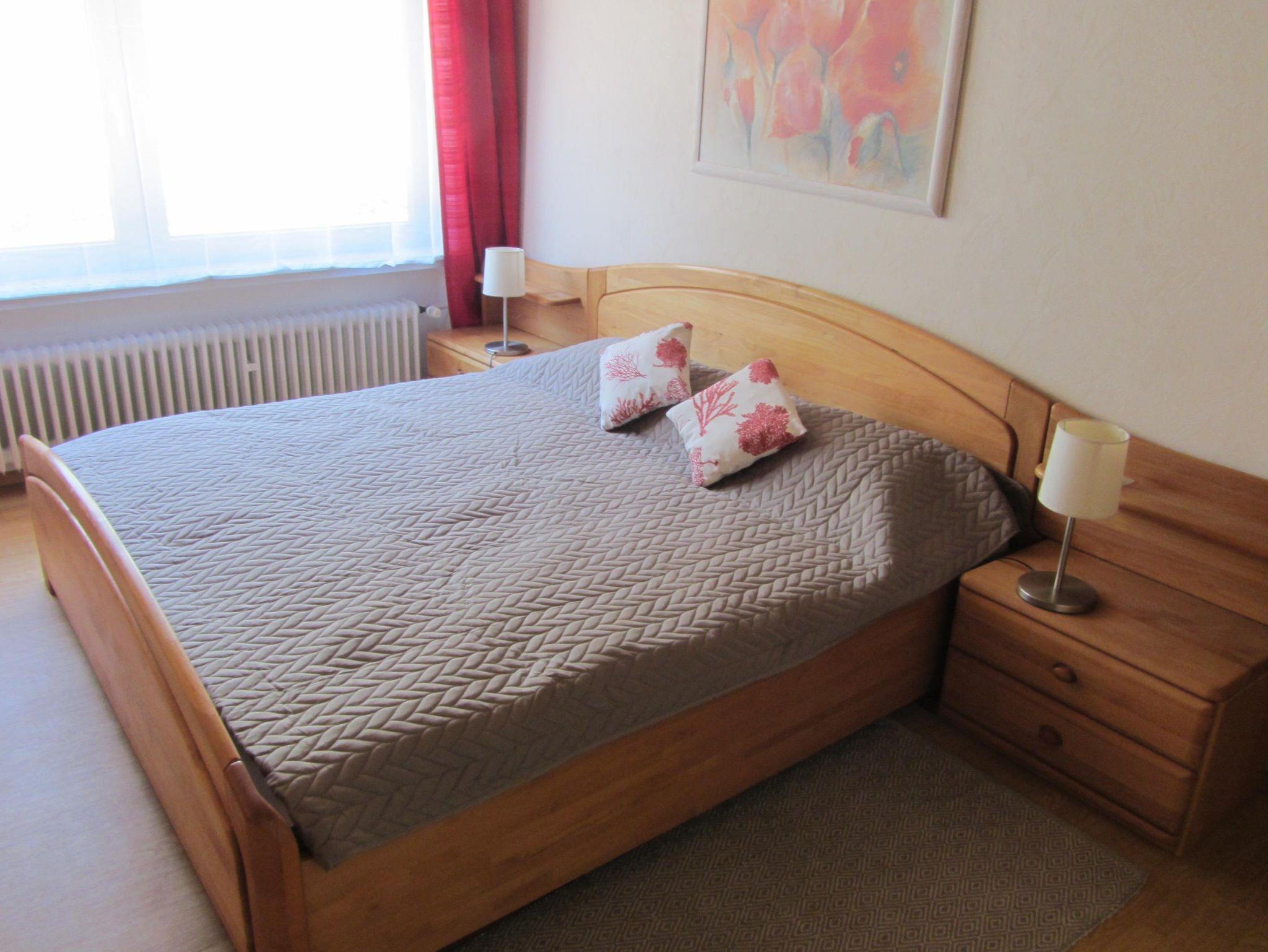 Die 69 qm große Ferienwohnung liegt im Erdgeschoss eines Wohnhauses und ist über 2 Treppenstufen erreichbar. Sie verfügt über eine große Küche und das Schlafzimmer hat ein 2 x 2 Meter großes Doppelbett. Die Wohnung ist für max. zwei Personen buchbar.