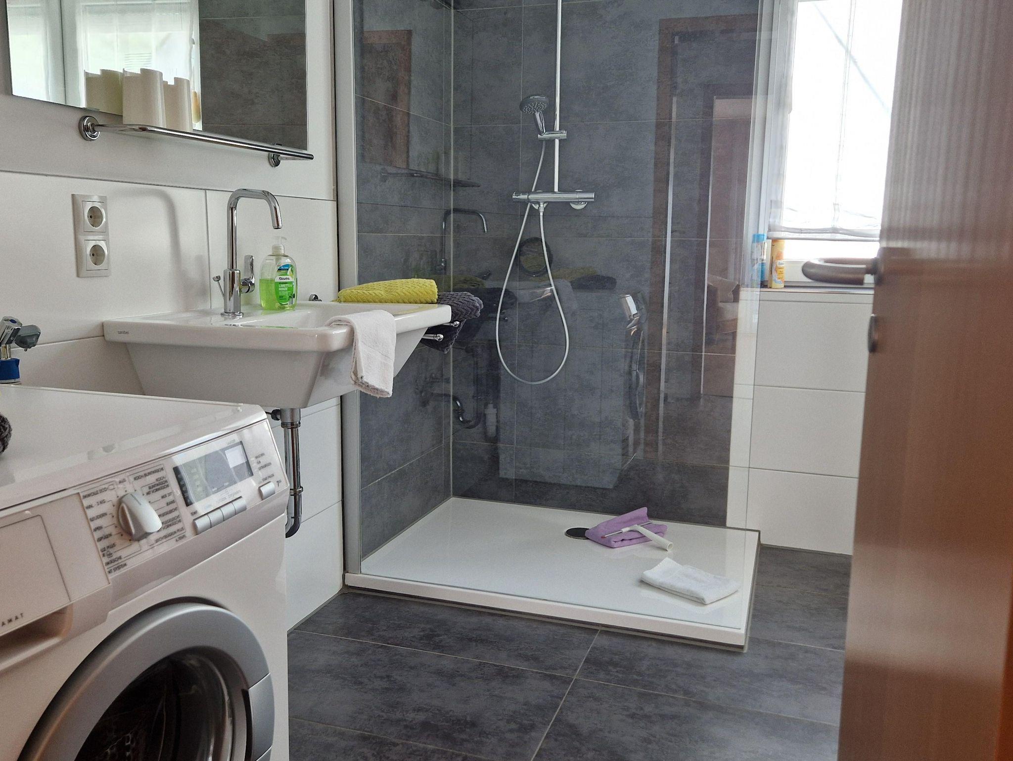 Unser großes, neues und modernes Badezimmer mit begehbarer Dusche bietet alles, was das Herz begehrt. Zur Ausstattung gehört neben einem beheizten Handtuchwärmer, ein Kosmetikspiegel, Kosmetikartikel und ein Fön.