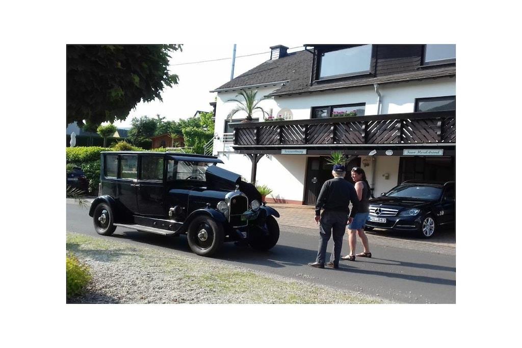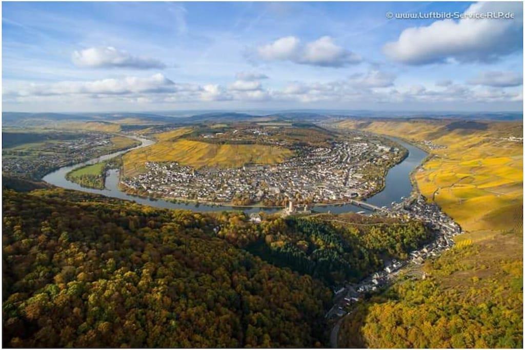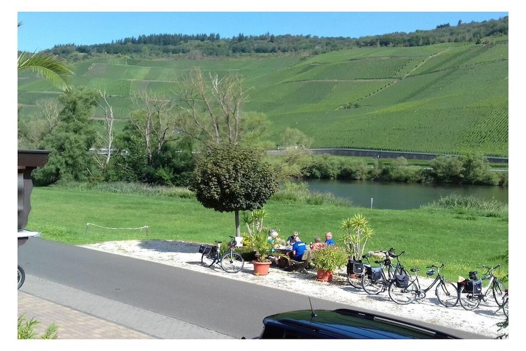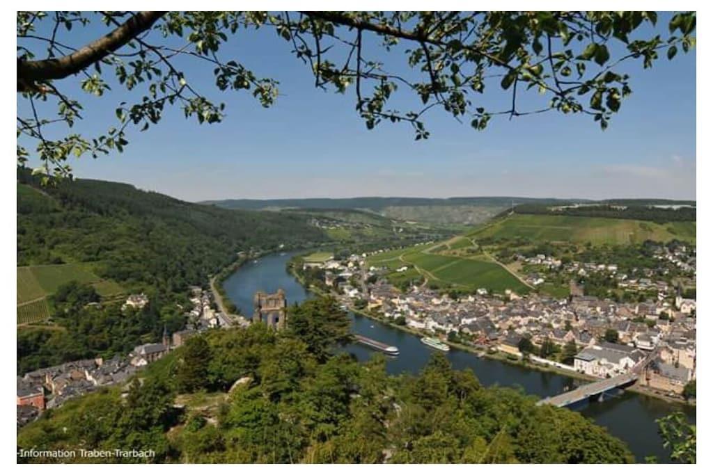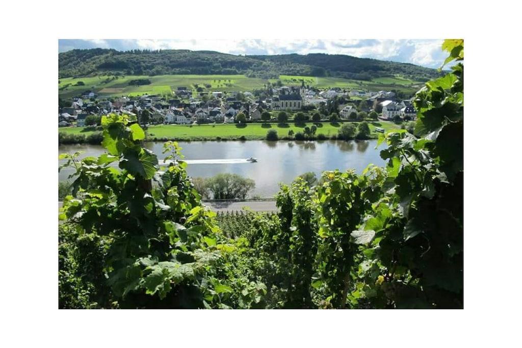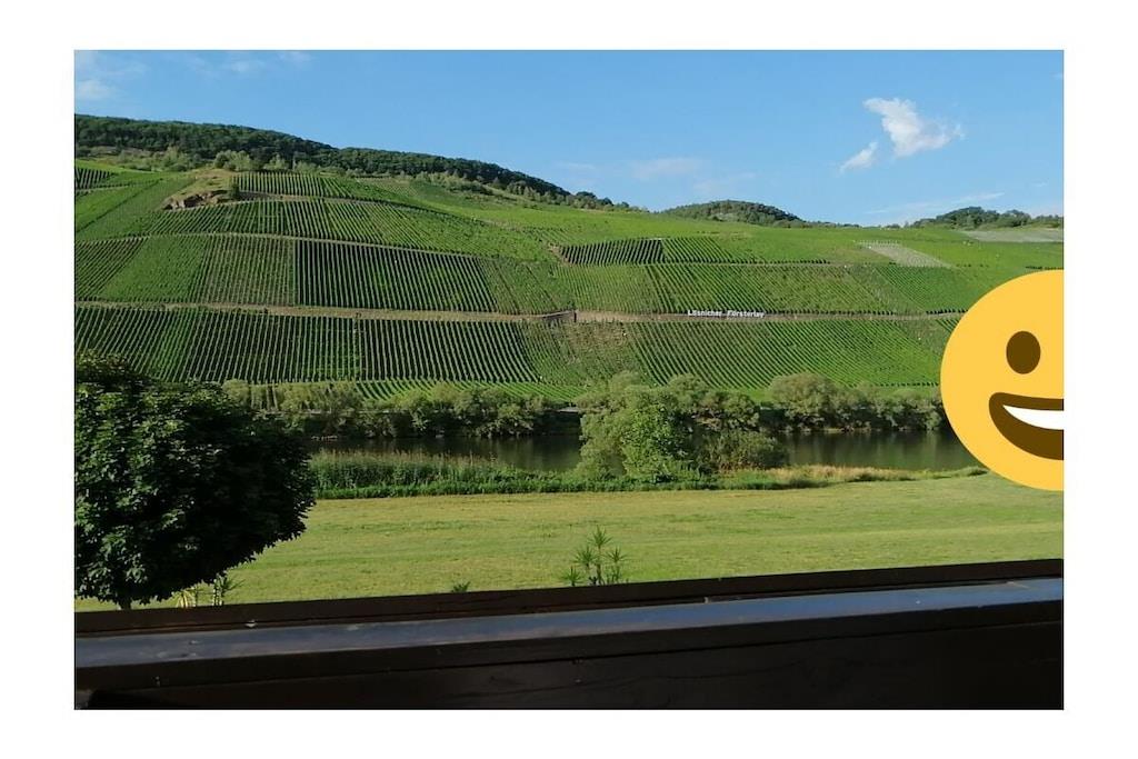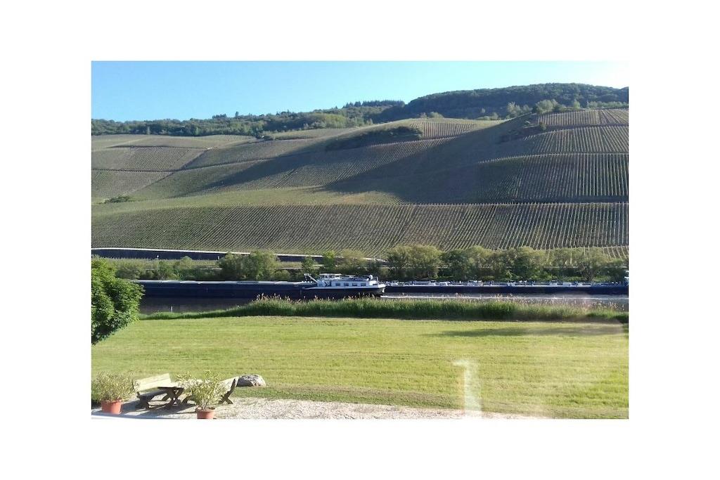 The holiday apartment (approx. 75 square meters) has a double and a triple room, suitable for 2-4 people. Large living/dining/kitchen room with panoramic views of the Moselle and vineyards. Large balcony with seating area with a view of the large Moselle area. The holiday apartment has a separate toilet room and a bathroom with shower. Holiday apartment with spacious parking space and a locked bicycle/motorcycle garage. Internet connection. Bread service