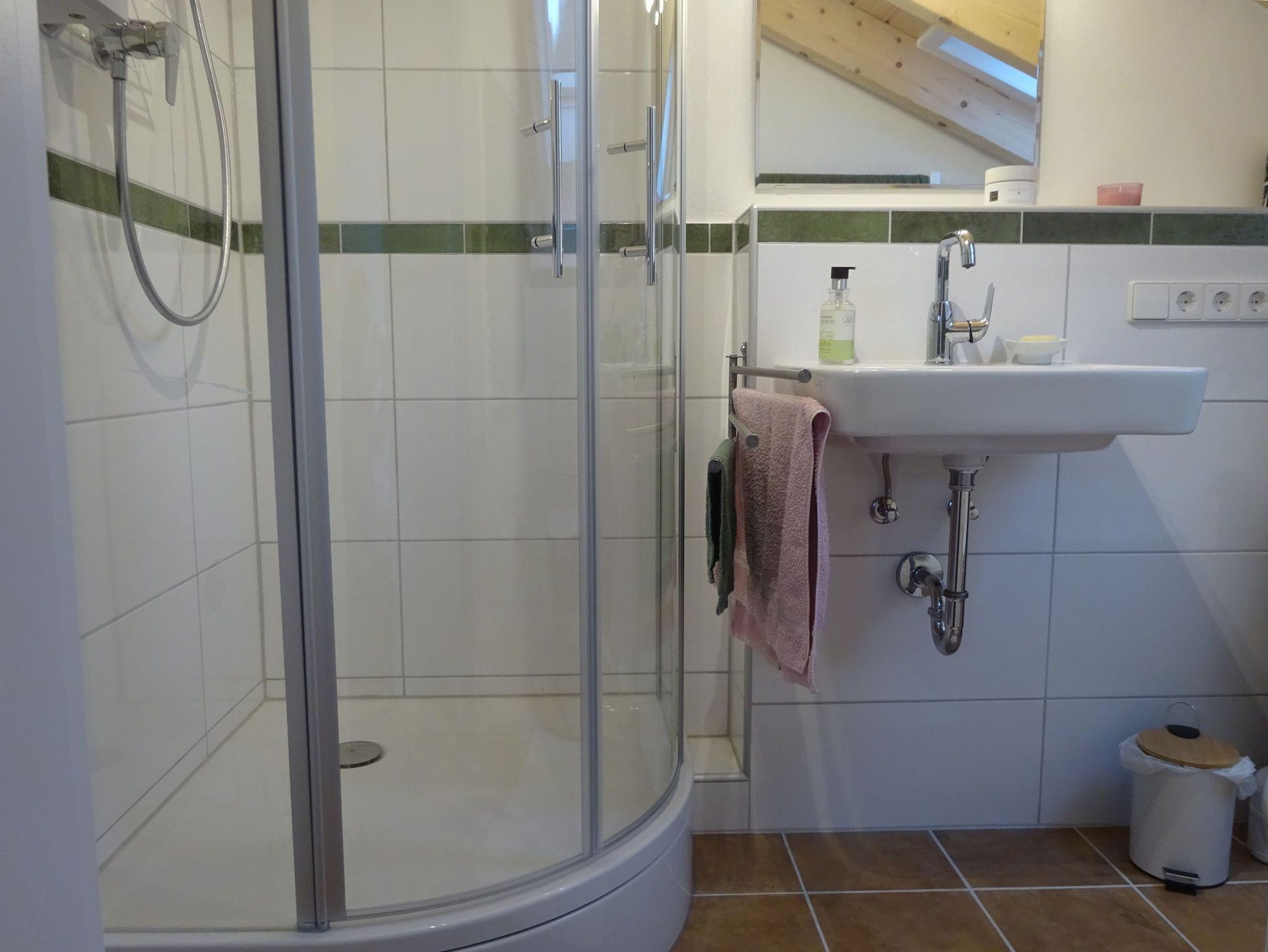 Das separate Tageslichtbad mit Dusche bietet frische Handtücher, Bettwäsche ist ebenfalls inklusive. Bitte informieren Sie uns vorab, ob Sie - allein oder zu zweit - lieber unter einer großen Bettdecke (220 cm x 155 cm) oder unter ein bzw. zwei normalen Bettdecken (200 cm x 135 cm) schlafen möchten.
