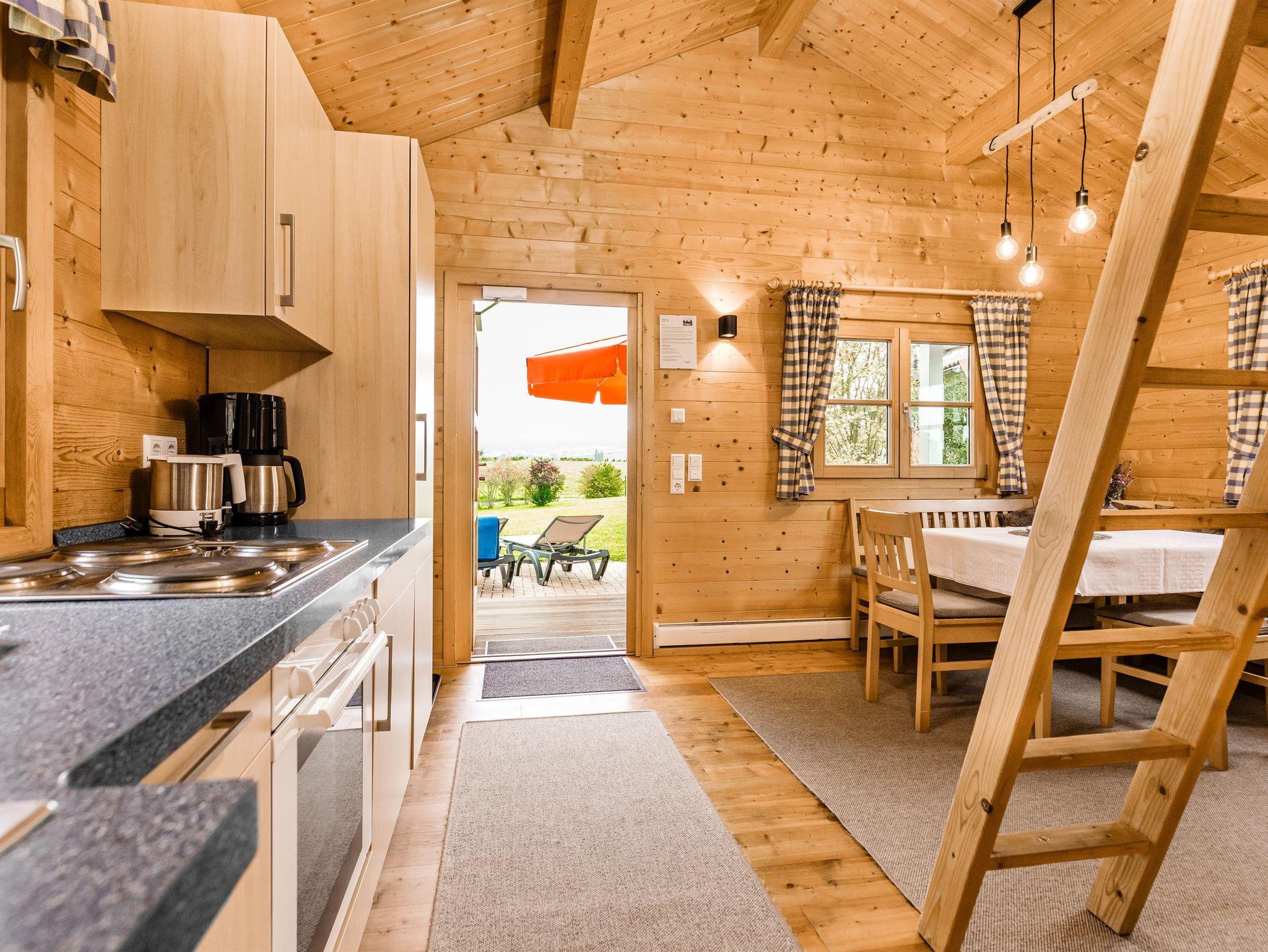 Auf unserem oberen Platzteil stehen diese 5 Holzhäuser. Im inneren finden Sie eine gemütliche Ausstattung, wie zum Beispiel erhöhte Betten im Schlafzimmer, eine gepolsterte Eckbank mit 3 Stühlen, großen Flatscreen TV und einem Küchenblock mit Backofen und Spülmaschine. Ein komplett eingerichtetes Badezimmer finden Sie ebenfalls vor. Im oberen Schlafbodenbereich, der über eine Holzleiter erreichbar ist, befinden sich 4 weitere Schlafplätze. Eine überdachte Terrasse mit Sitzgelegenheiten für 6 Personen und 2 stabilen Sonnenliegen runden das Angebot mit herrlicher Aussicht ab. Haustiere sind in den Ferienhäusern nicht erlaubt.