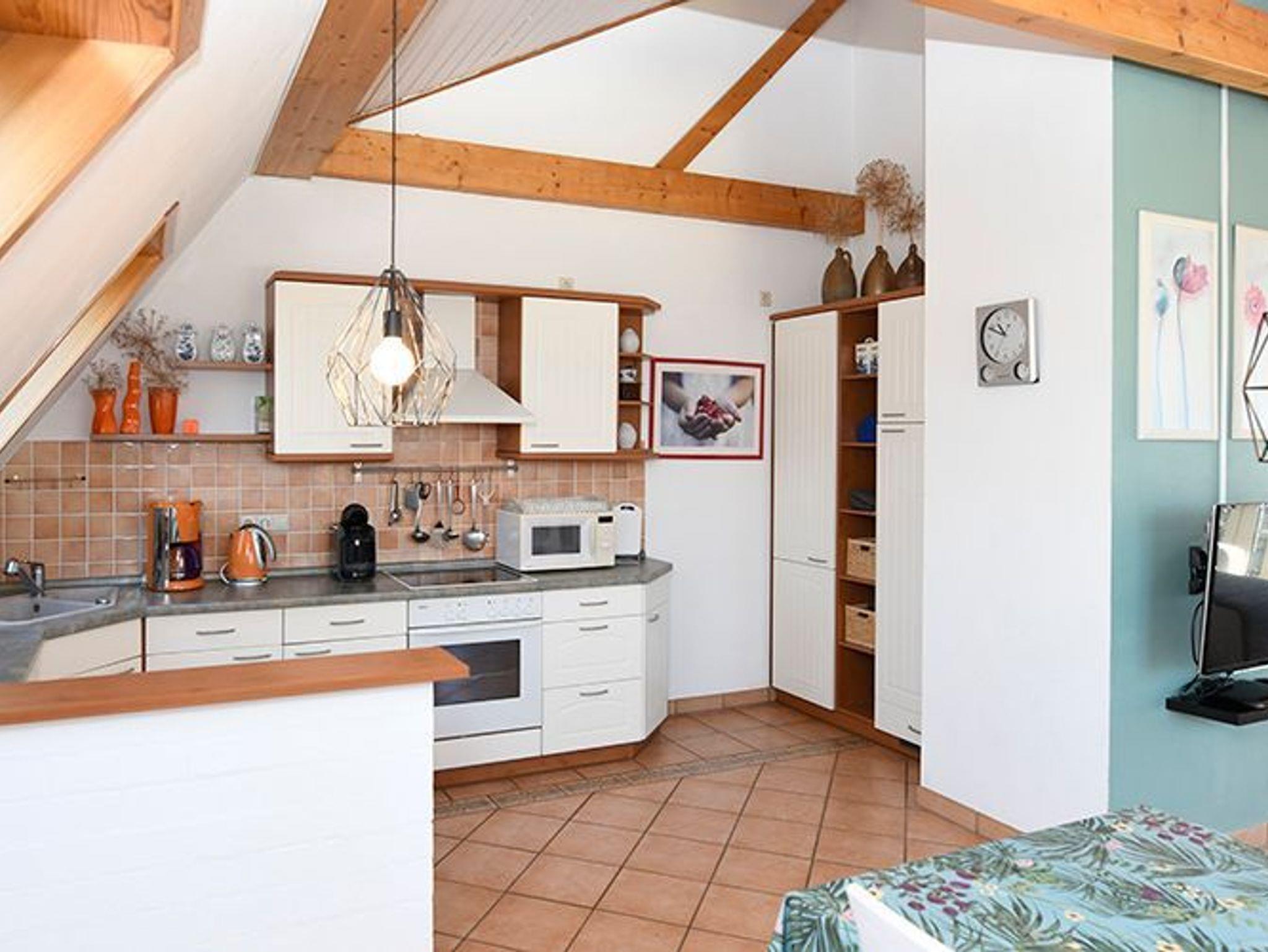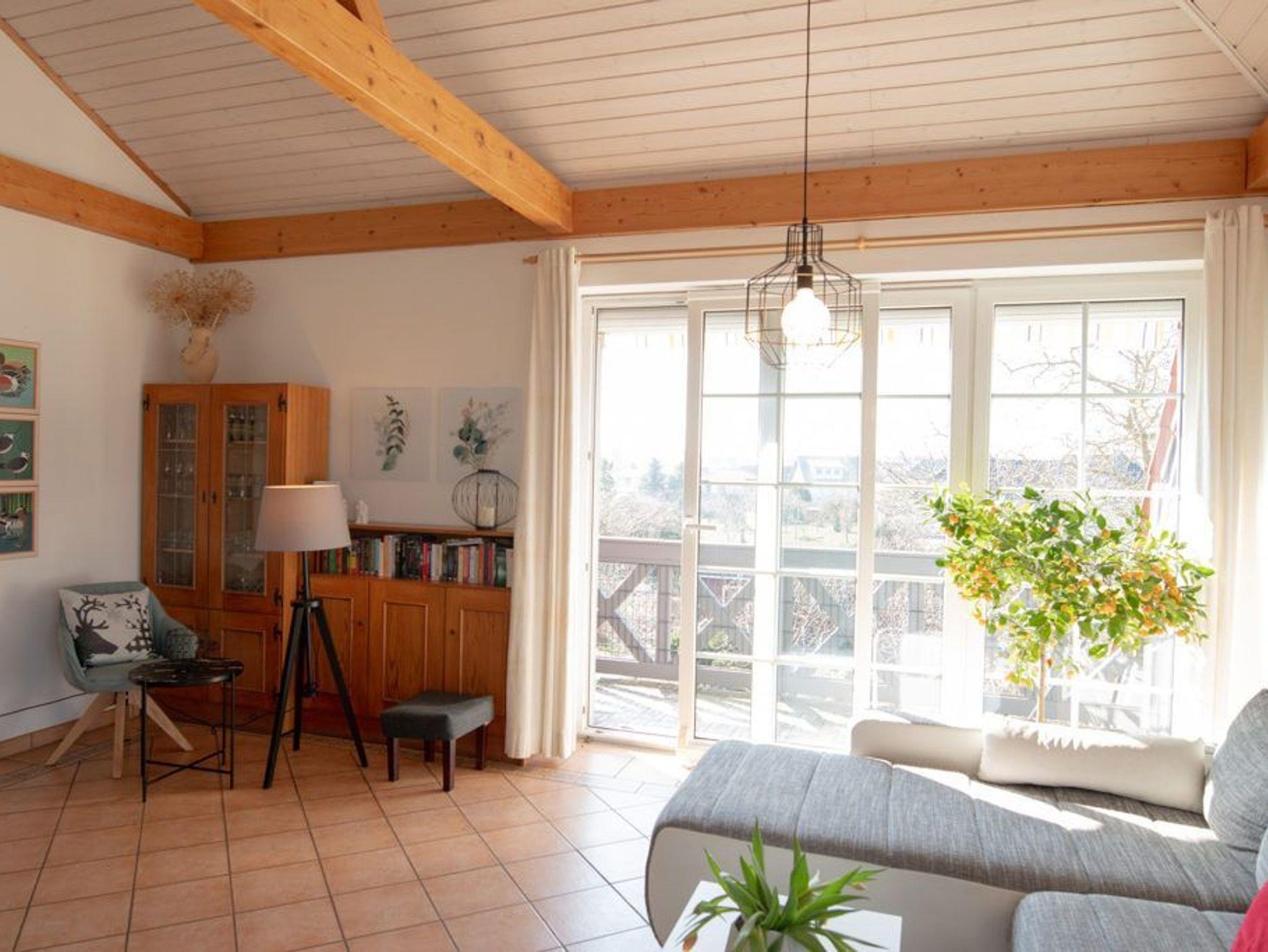 Eine weitere kleinere Ferienwohnung liegt ebenerdig und ist barrierefrei. Sie verfügt über einen gemütlichen Wohn-Essbereich, Schlafzimmer, TV, WLAN, moderner Küche, barrierefreies Bad mit Dusche, WC und Fön, Fußbodenheizung und eine Terasse.