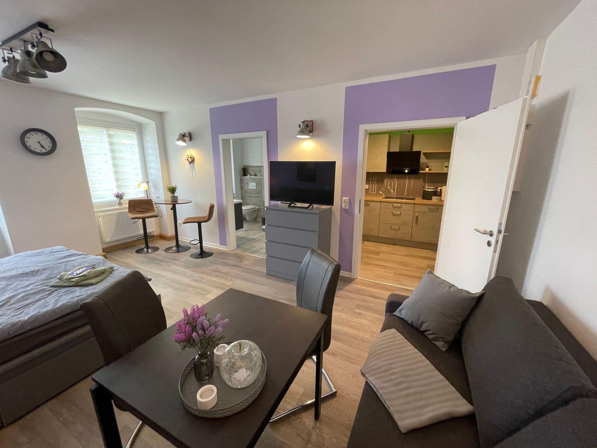 Es erwartet Sie eine vollausgestattete komfortable 50 m² Wohnung mit einem Parkpaltz direkt im Hausgarten.