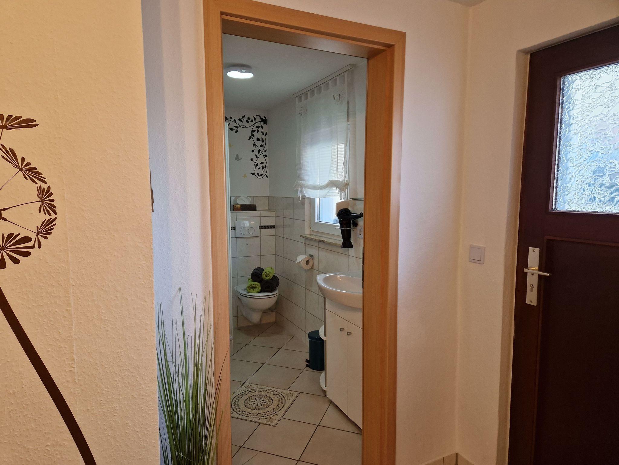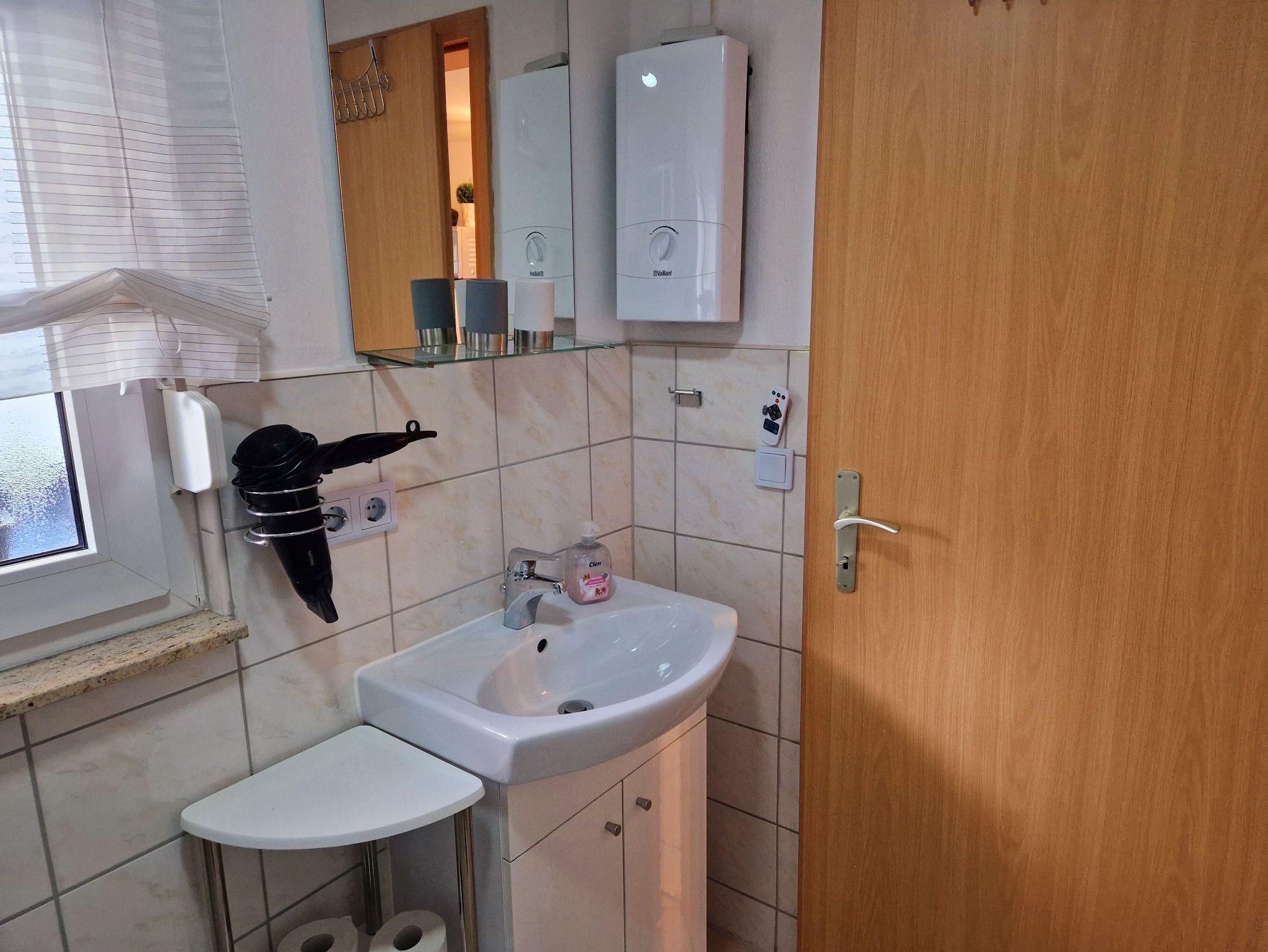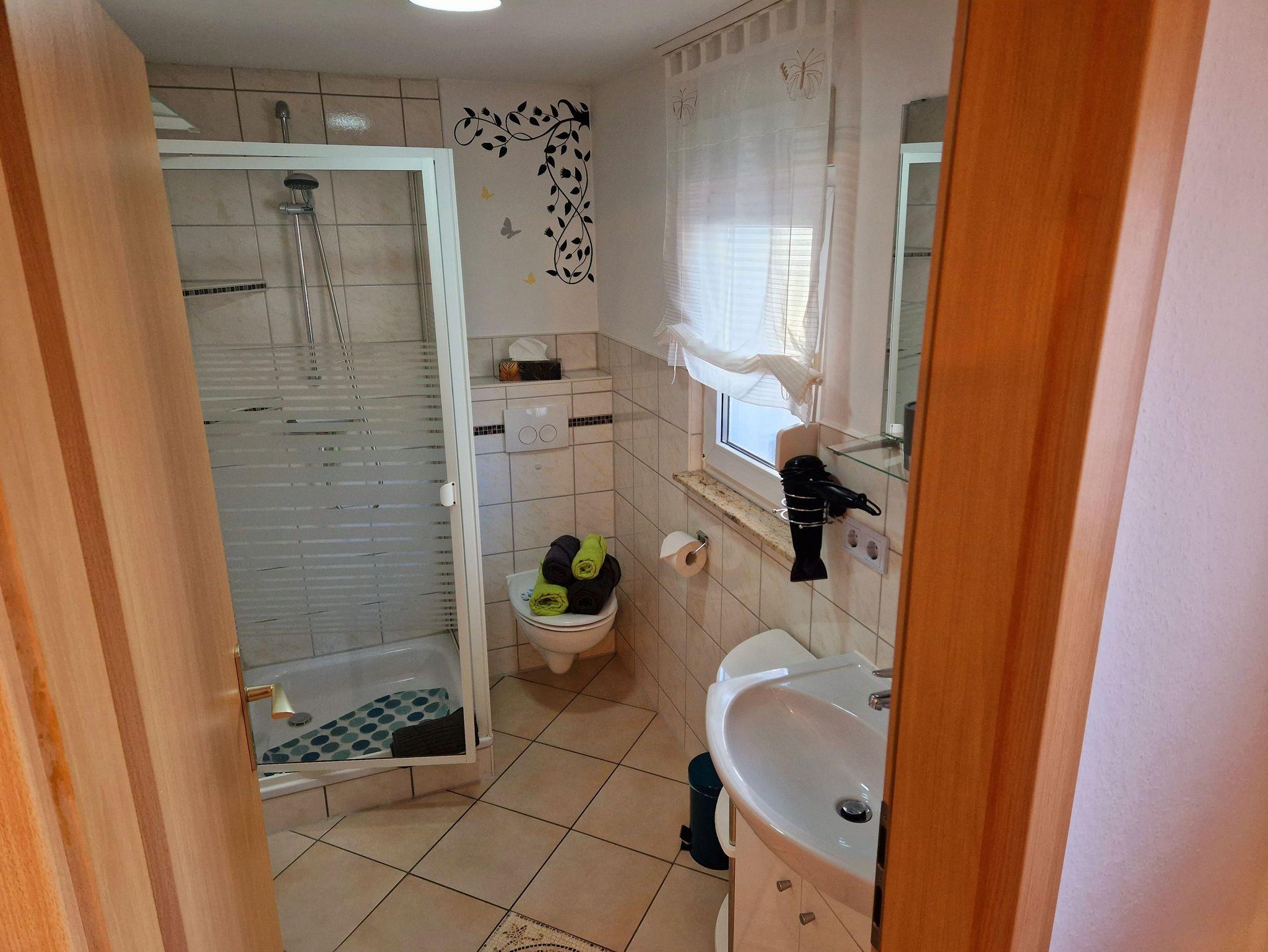 Außerdem gibt es ein Duschbad.