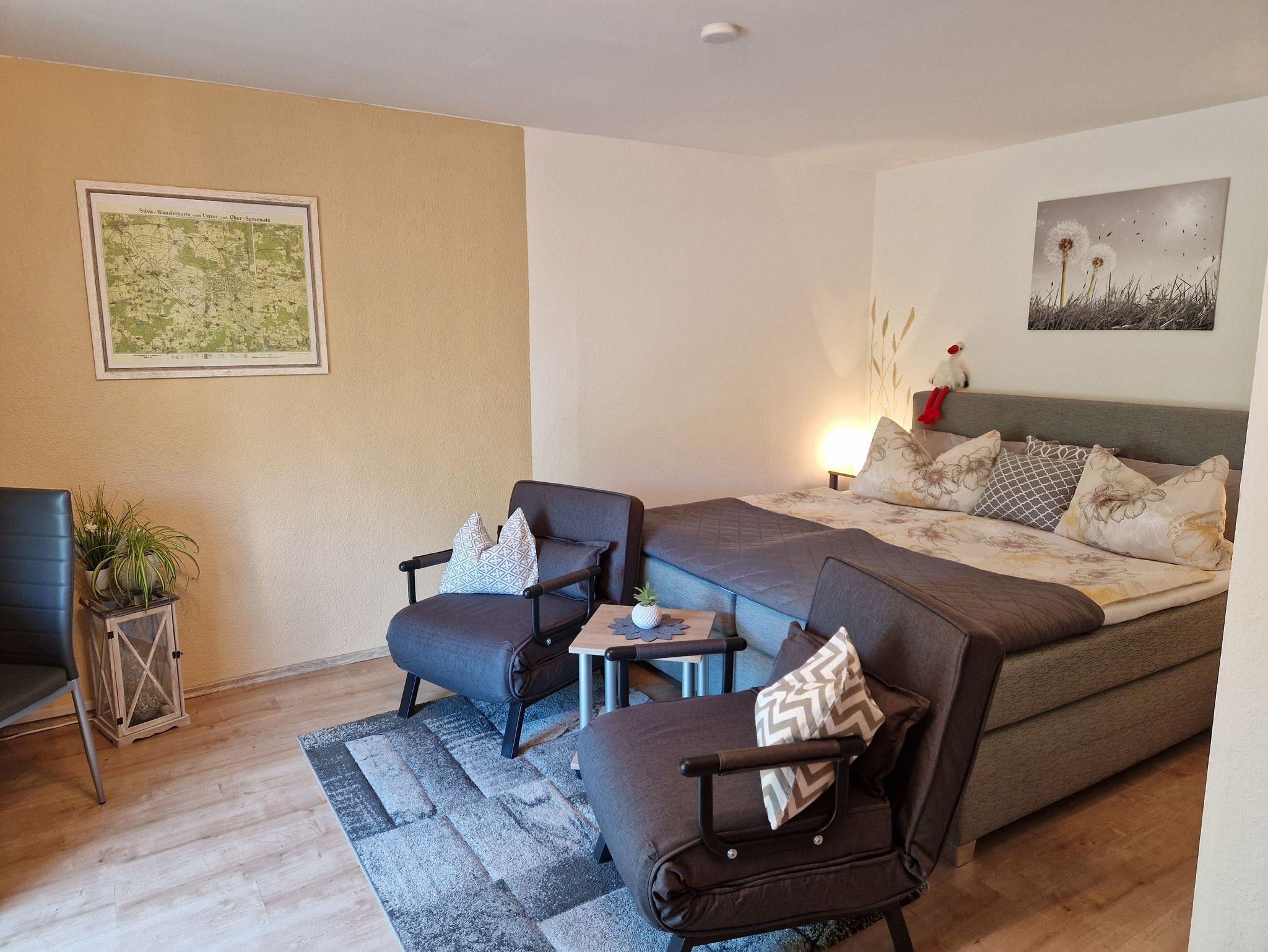 Willkommen in der Ferienwohnung Christina in Lübben (Spreewald). Sie bietet Platz für bis zu drei Erwachsene oder zwei Erwachsene und zwei Kinder.