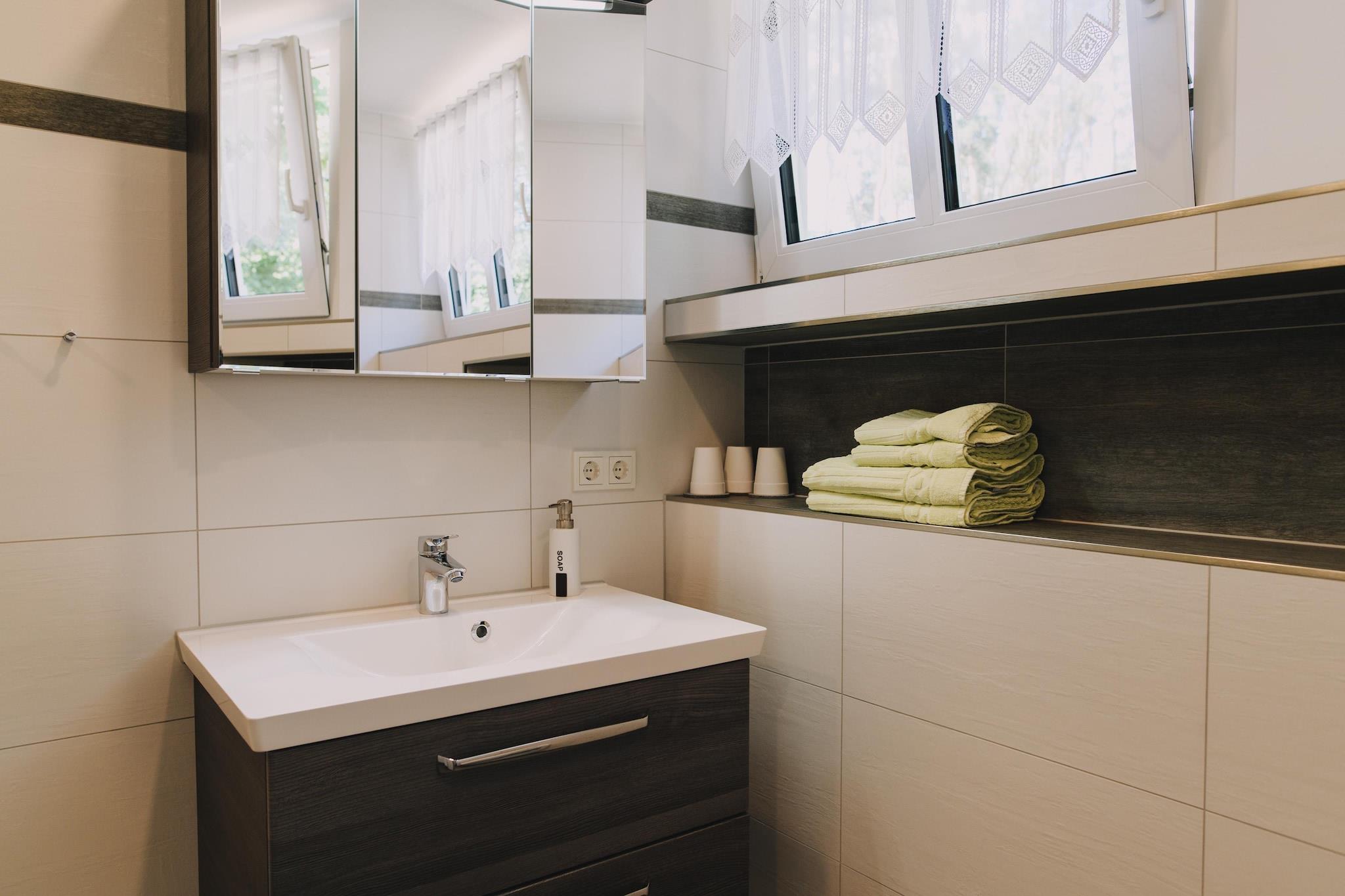 This newly renovated single-storey holiday home is located on the outskirts of Lübben, approx. 3km from the city center, directly in the countryside and on a property on a branch of the Spree. On the property there is a small guest house and an inn, a great children's playground and you have the opportunity to rent bicycles and borrow paddle boats for a canoe trip. Boat trips can be booked directly on site. Highlights included: final cleaning, laundry package, tea towels, WiFi, all consumption-based energy costs, parking space. Note: Wood for the fireplace is included for the first fireplace session. The firewood can then be purchased locally. Attention: Occupancy may only be 2 adults and 2 children up to 14 years old!
