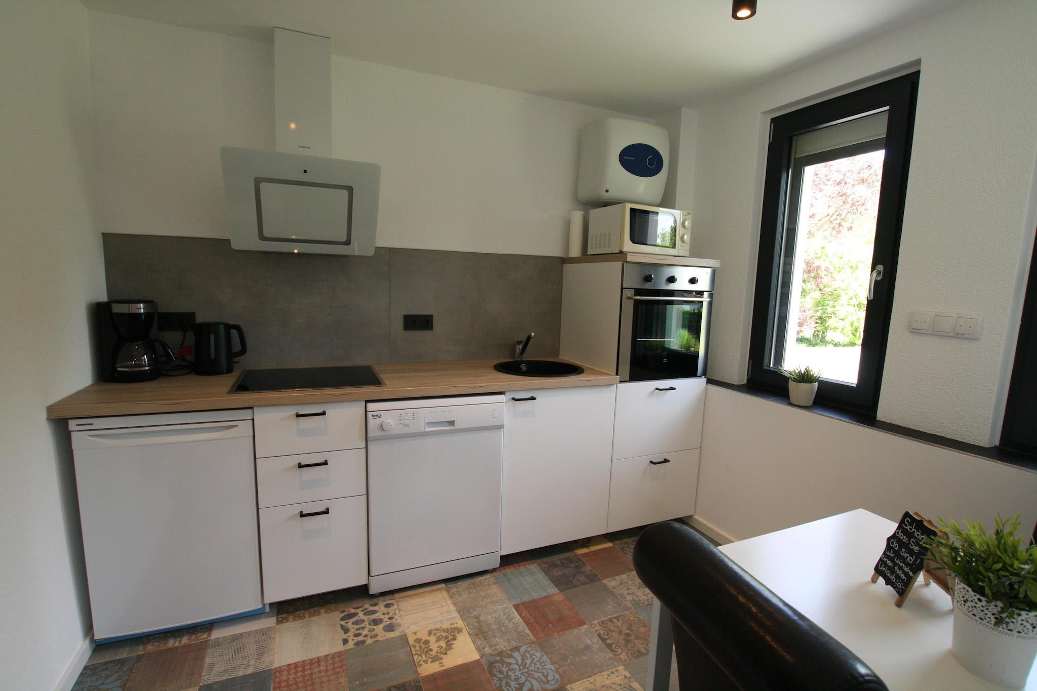 Ground floor: (open kitchen(dining table, hob(ceramic), electric kettle, toaster, coffee machine, oven, microwave, dishwasher, fridge-freezer), Living/bed room(single sofa bed, double bed, TV(satellite), DVD player, radio, CD player), bathroom(shower, toilet, hairdryer)) grill, heating(gas), terrace, garden furniture, parking
