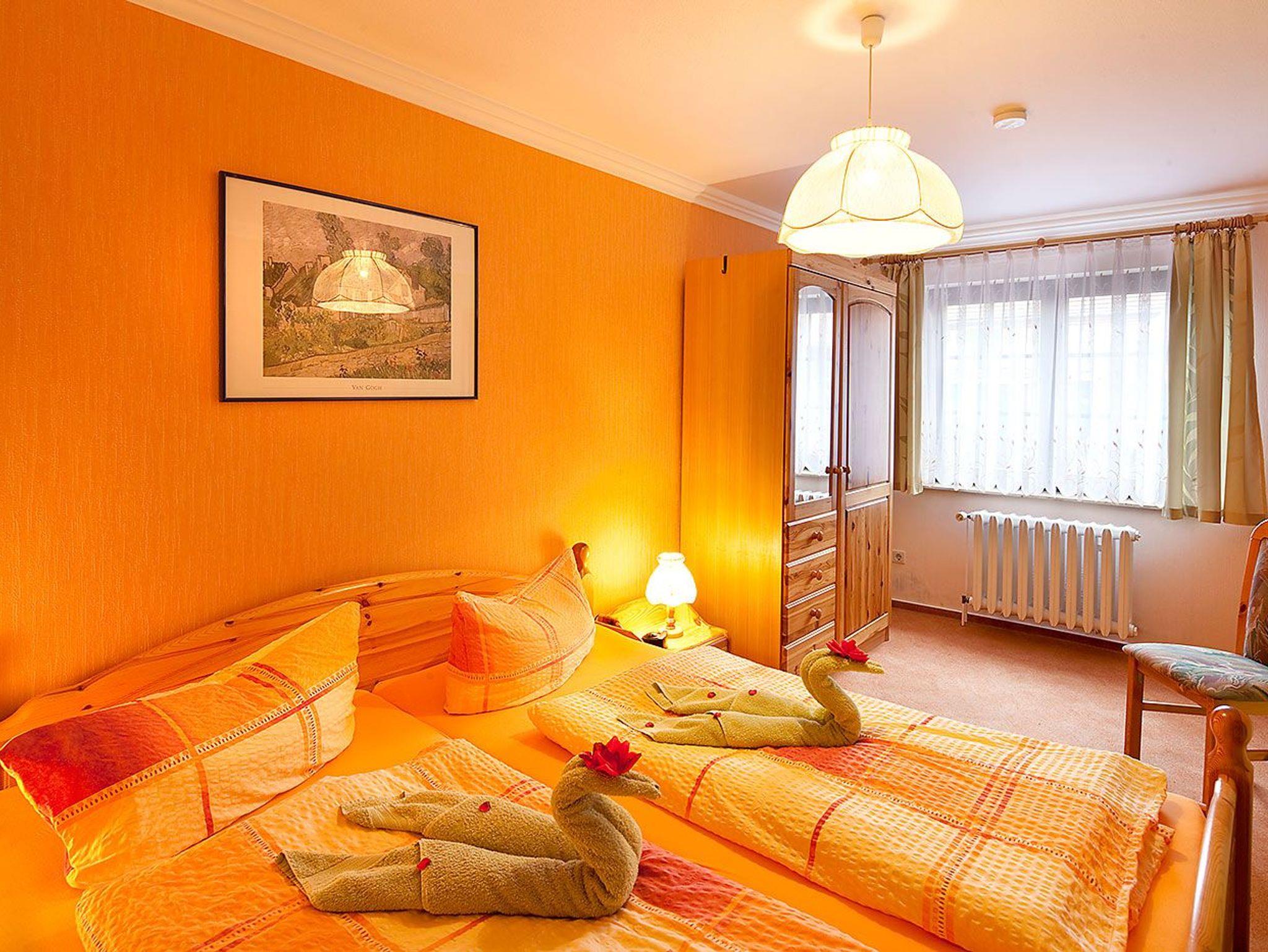 Unsere Ferienwohnung Sonnenhof kann mit 3 separaten Schlafzimmern mit eigenem Bad und TV gebucht werden.