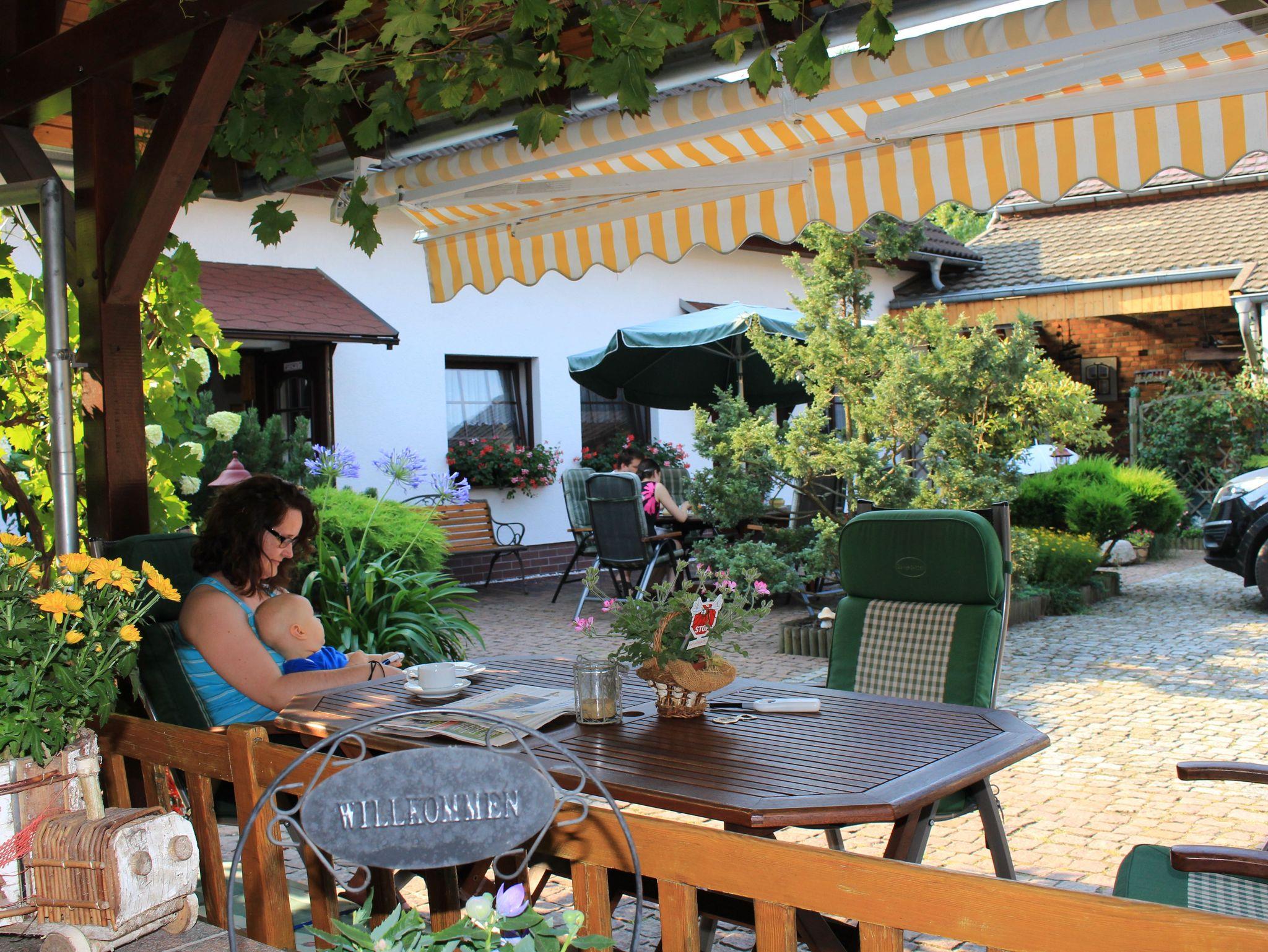 Vor der Ferienwohnung ist eine nicht einsehbare Terrasse zum Frühstücken, Entspannen, für eine Tasse Kaffee oder ein Gläschen Wein. Bereiten Sie hier Ihre neuen Pläne vor oder entspannen Sie von den Erlebnissen des Tages.