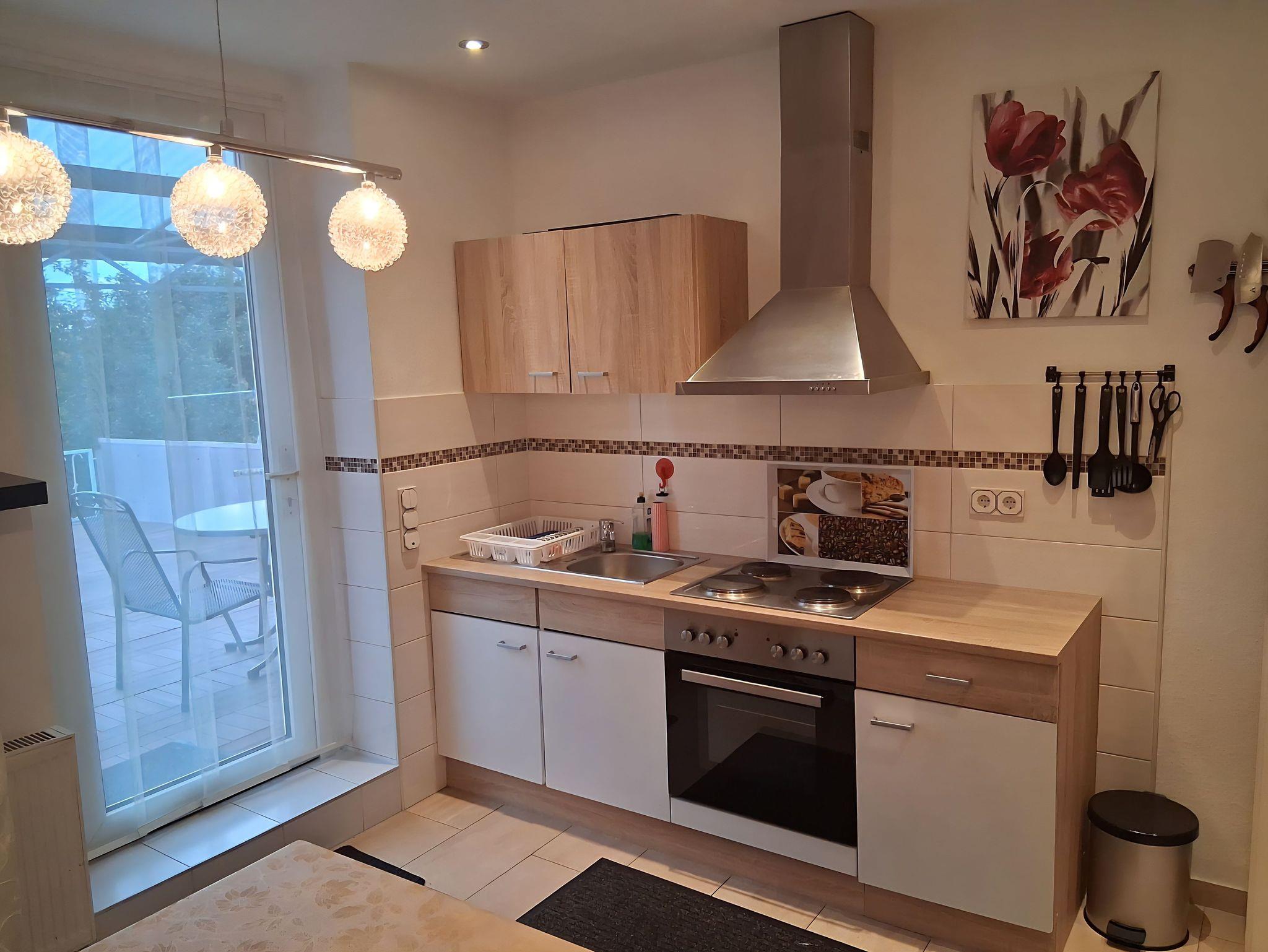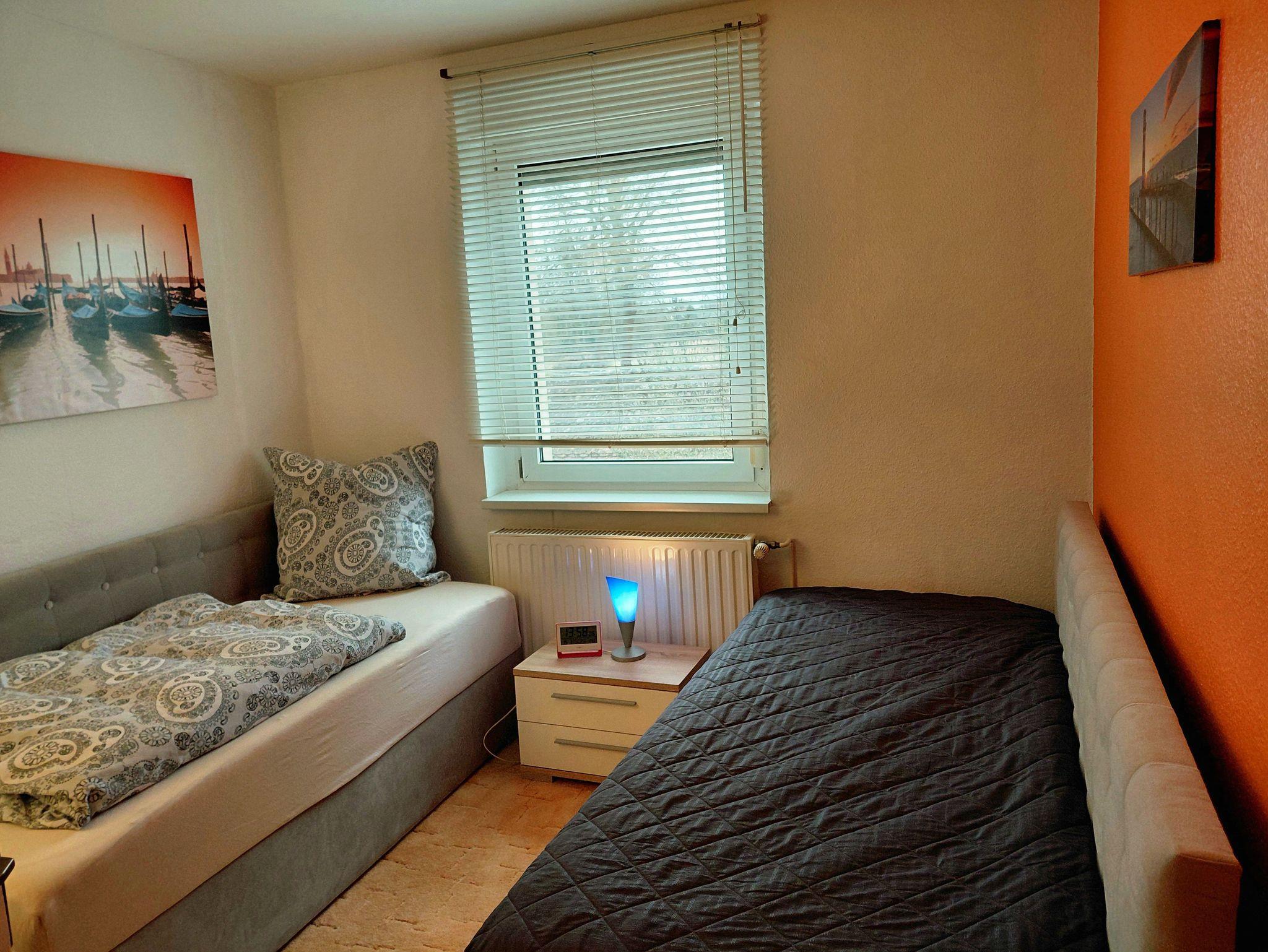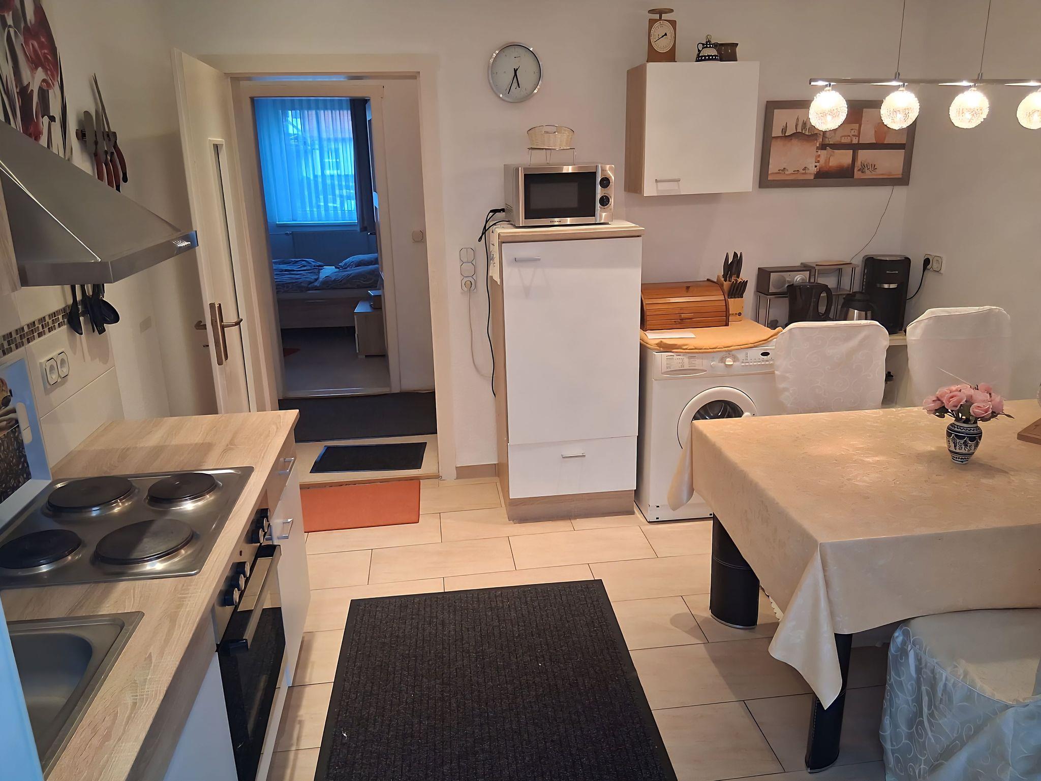 Die Gästewohnung befindet sich in der gesamten ersten Etage eines Zweifamilienhauses, welche über einen geräumigen Treppenaufgang und einem zusätzlich verschließbaren seperaten Eingang zu erreichen ist. Die Ferienwohnung verfügt über 5 Räume (Wohnzimmer, zwei Schlafzimmer, Küche, Bad - siehe Grundriss in der Galerie).