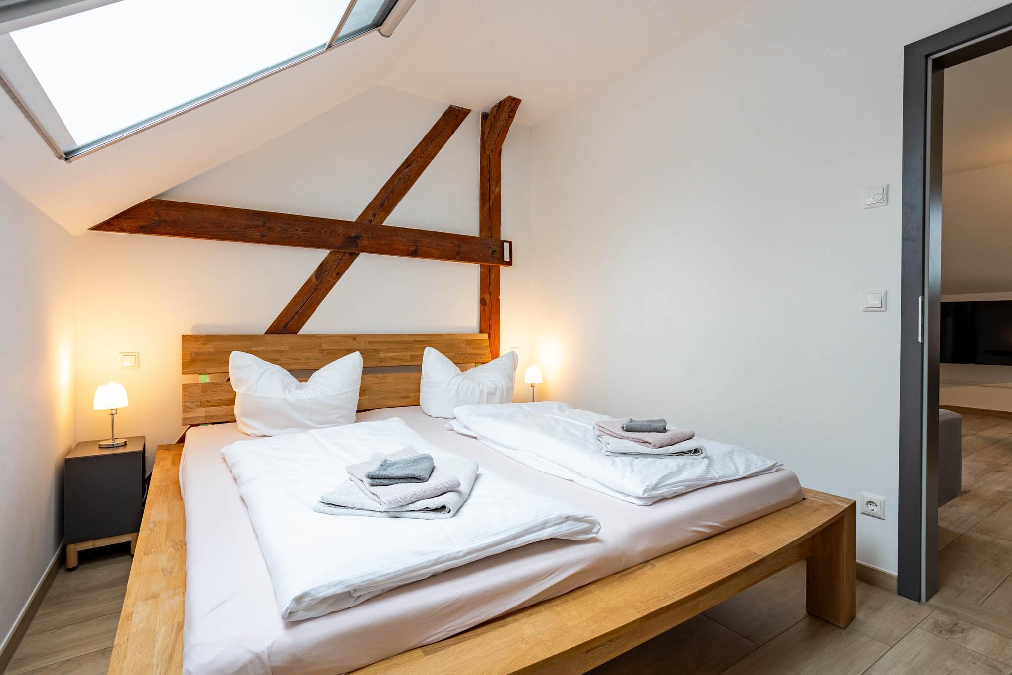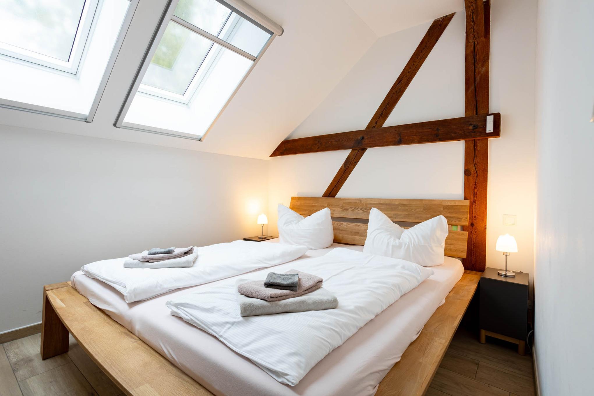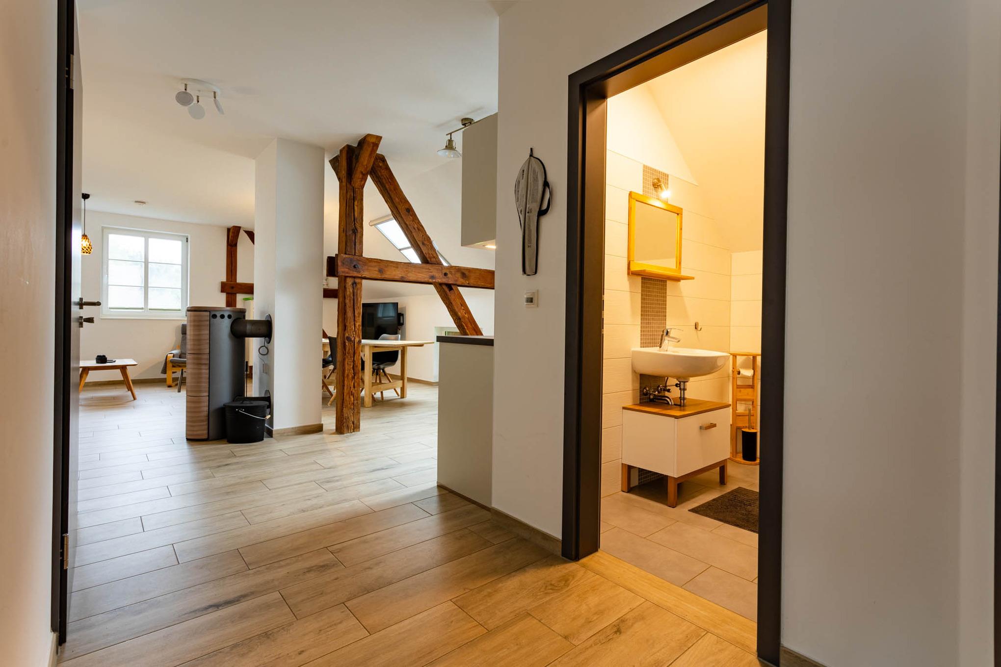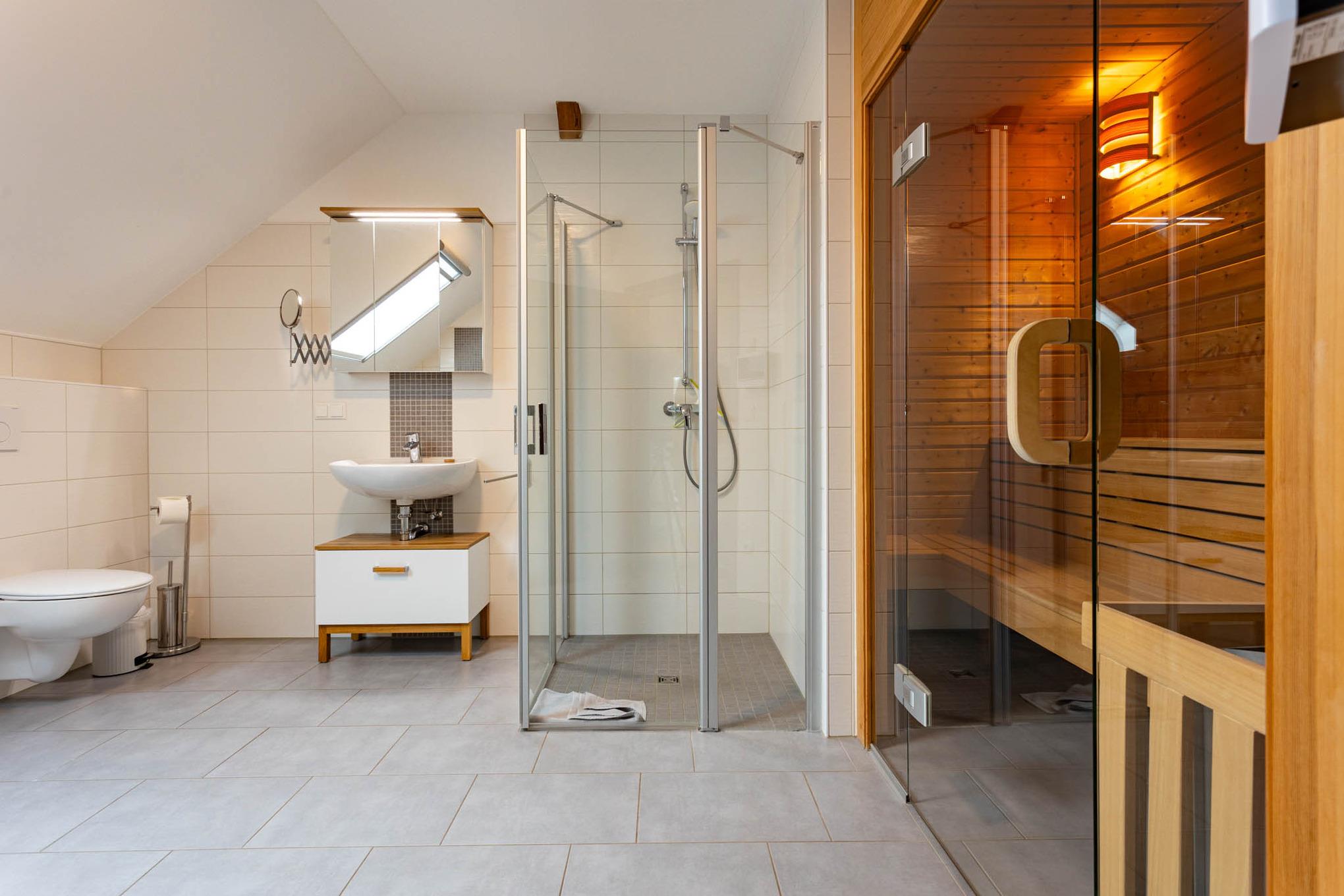 Großzügige 3-Zimmer-Ferienwohnung direkt im Dachgeschoss mit eigener Terrasse. Genießen Sie Wohlfühlatmosphäre mit eigener Sauna, Kamin und Fußbodenheizung.
