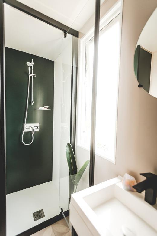 Aufgeteilt ist das Mobilehome auf drei Schlafräume. Darunter ein Zimmer mit einem Doppelbett, ein Zimmer mit zwei Einzelbetten und ein Zimmer mit einem Etagenbett. Die Konstellation ist besonders Familien mit