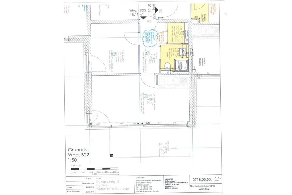 Sie erwartet eine 2 Zi - FeWo im 1. OG (Fahrstuhl) mit ca. 49m² + großem, nach Süd-Ost ausger. Balkon mit Blick auf die Trave + den Schiffsverkehr. Die FeWo hat große, bodentiefe Schiebefenster. Der Zugang zur FeWo ist barrierefrei. Die Einbauküche ist vollausgestattet. Der Essplatz ist gemütlich. Im Wohnzimmer befindet sich ein Flachbildschirm (Smart-TV) mit SAT-TV, Stereoanlage + CD. Das Schlafzimmer ist mit einem Doppelbett, gr. Schrank + SAT-TV (Smart-TV) ausgestattet. Im Badezimmer findet sich neben Dusche/WC ein festinstallierter Fön. Es gibt einen Abstellraum mit Waschmaschine, zwei Fahrräder, einen Strandkorb am Strand, + einen PKW-Stellplatz vor dem Haus. Die 2013 erstellte FeWo liegt am Europaweg ausger. zur Trave-Mündung + dem Skandinavienkai.
