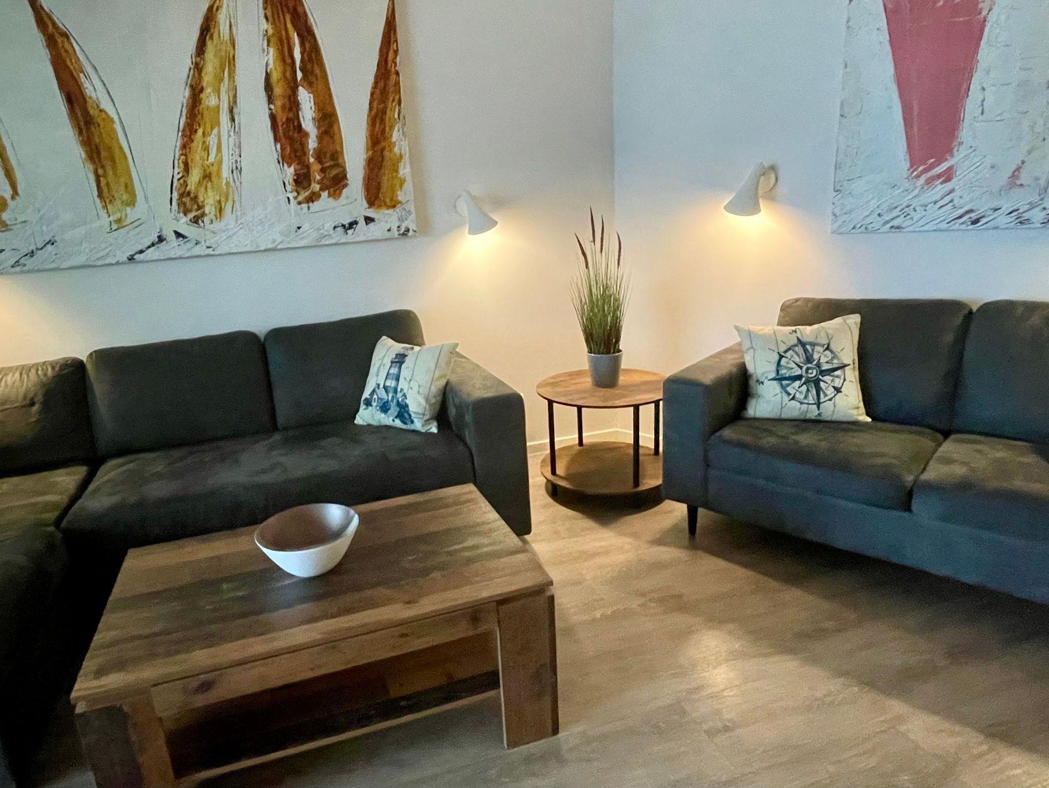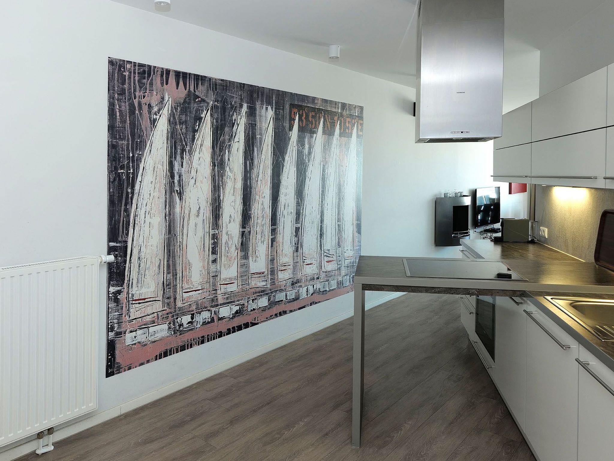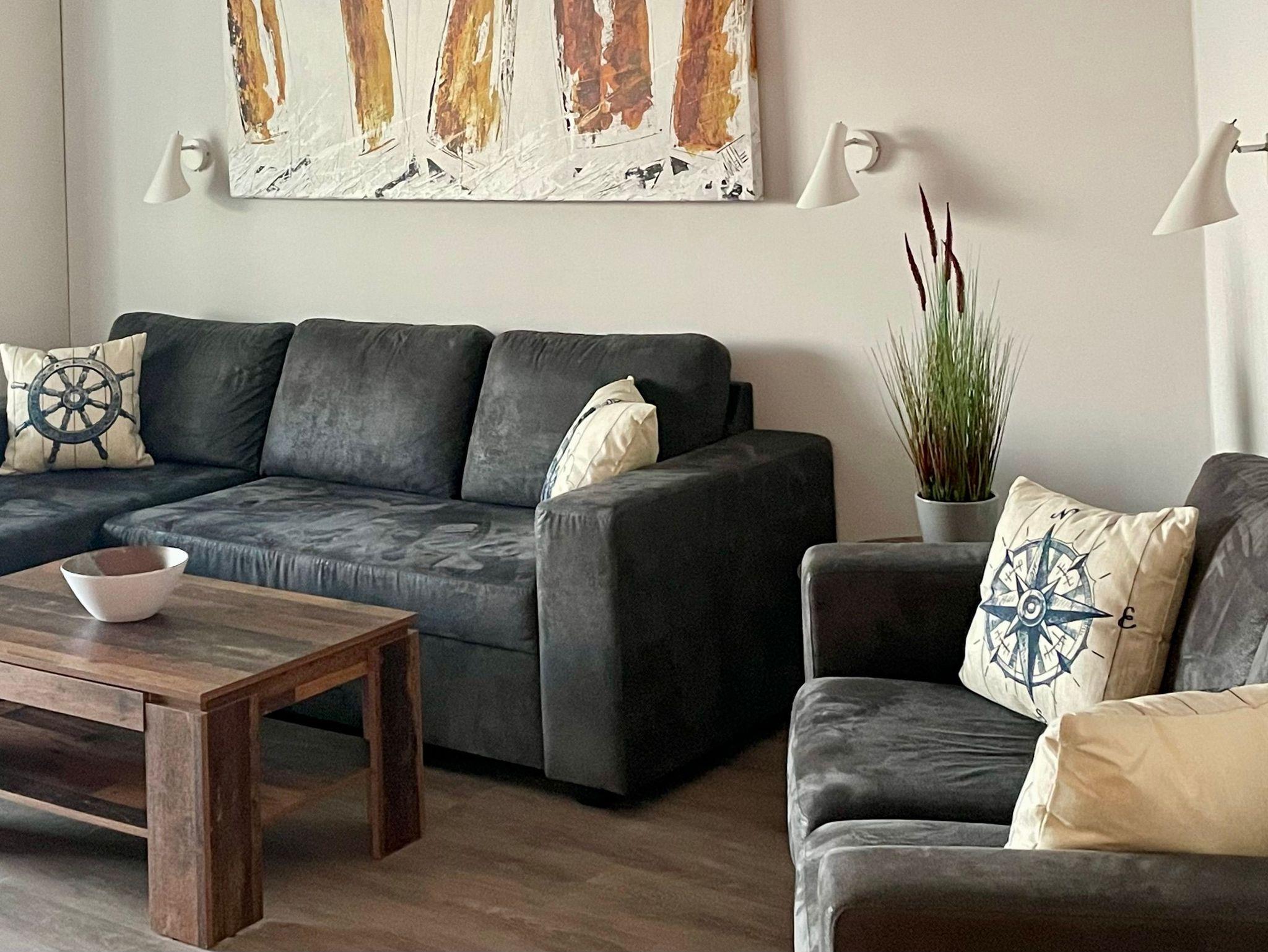 Die Wohnung wurde 2025 renoviert und neu möbliert. Ein besonderes Highlight ist ihr persönlicher Wellnessbereich mit Sauna, Whirlpool und Dampfbad mit integrierter Doppel-Regendusche. Im Wohnbereich sorgen am Abend die Flammen des Bioethanolkamins für eine gemütliche Atmosphäre, ebenso wie die vorbeifahrenden großen Schiffe mit ihrer eindrucksvollen nächtlichen Beleuchtung.