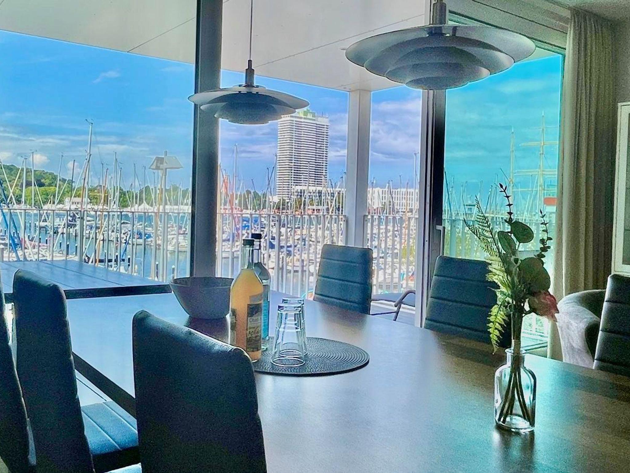 Genießen Sie den einmaligen Panoramablick vom Frühstückstisch oder Sofa und vom großzügigen Balkon dieser Ferienwohnung auf den Passathafen und auf Travemünde. Verbringen Sie traumhafte Tage am wunderschönen und nahe gelegenen Ostseestrand.