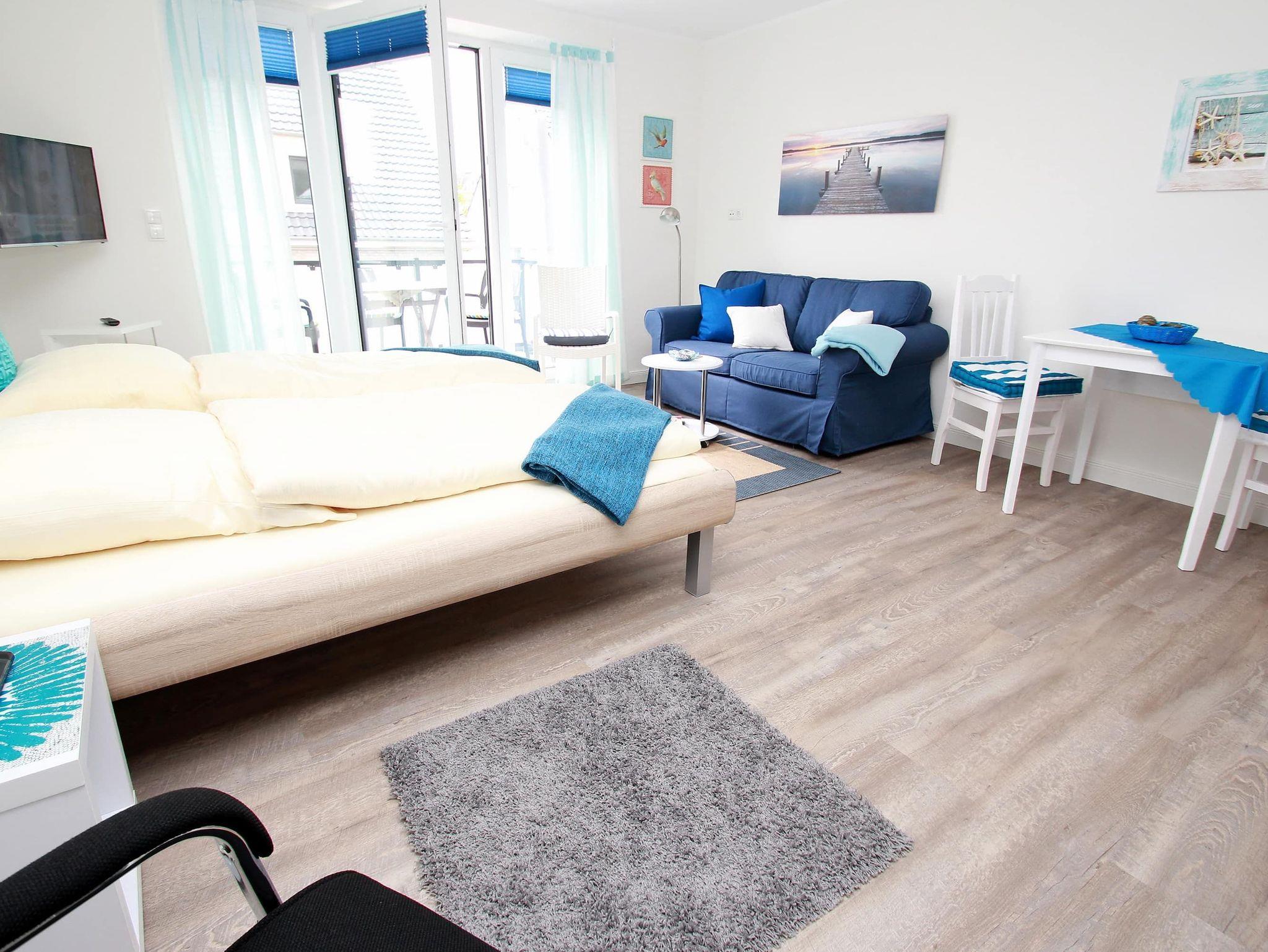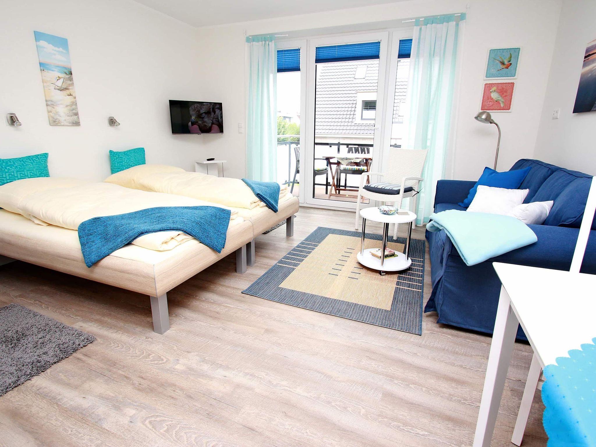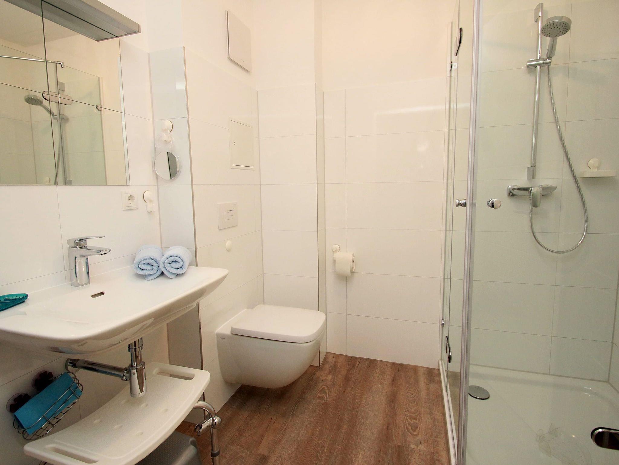 Dieses stufenlose, exklusive Appartement mit günstigen Übernachtungspreisen liegt zentral und ist gehbehindertenfreundlich. Im hellen Wohnraum des Neubaus befinden sich neben der offenen Einbauküche eine gemütliche Couch mit einem Couchtisch und ein Esstisch mit zwei Stühlen. Gegenüber stehen zwei bequeme Einzelbetten (je 90 cm x 190 cm). Im Flurbereich mit einer Garderobe und einem Kleiderschrank geht separat das moderne Duschbad ab. Rundum eine schöne, neue Wohneinheit mit sonnigem Balkon für junge und ältere Urlaubsgäste.