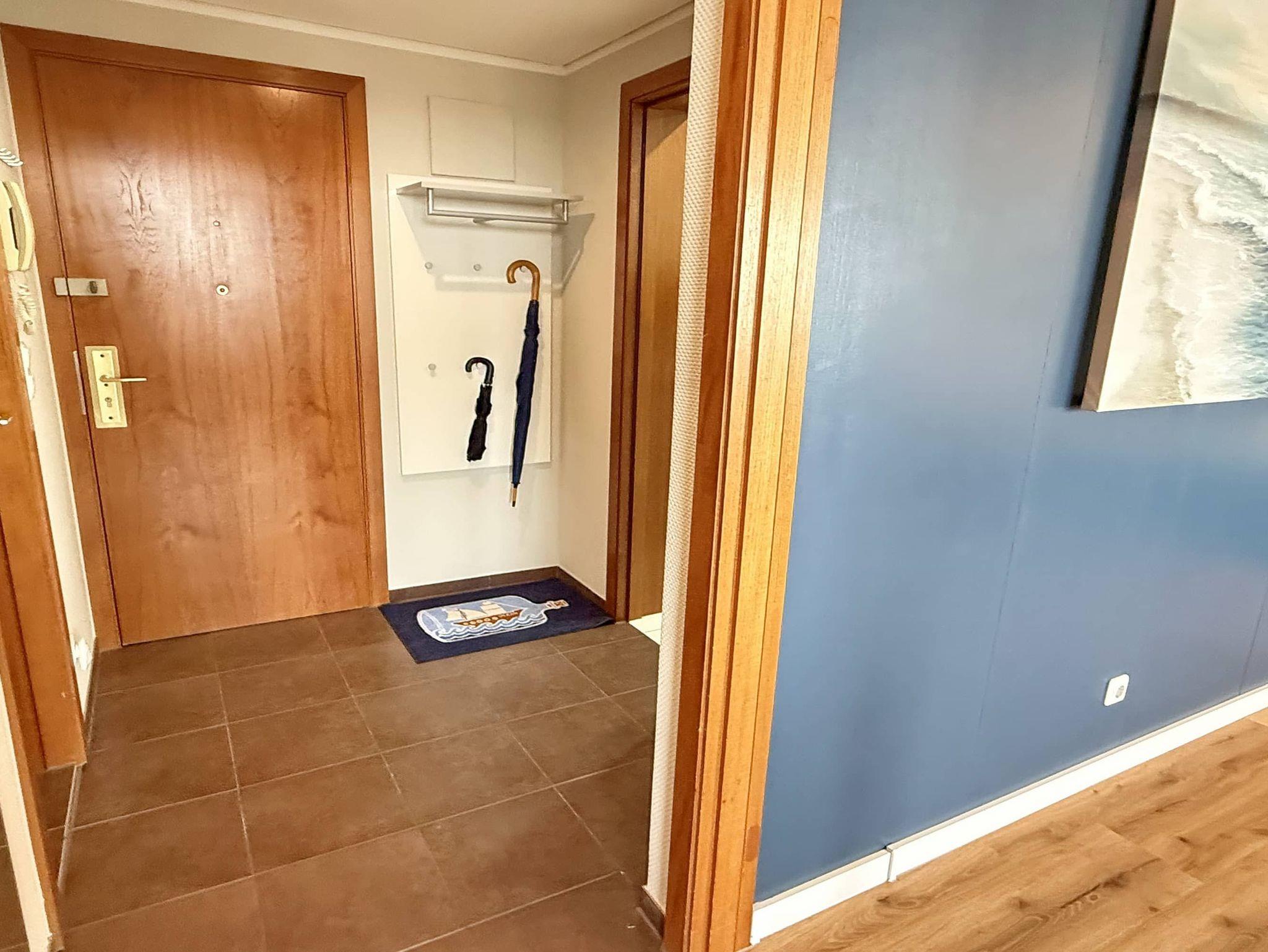 Diese stilvoll und gemütlich eingerichtete 2-Zimmer-Ferienwohnung bietet Platz für bis zu drei Personen und eignet sich hervorragend für Familien oder Paare. Der helle Wohnbereich überzeugt mit einem Essplatz, einem bequemen Sofa sowie einer Schlafcouch (140 × 200 cm), die sich in einer separaten Wohnraumnische befindet. Das Schlafzimmer ist mit einem komfortablen Boxspringbett (180 × 200 cm) und einem geräumigen Kleiderschrank ausgestattet. Vom Flur aus gelangen Sie sowohl in die voll ausgestattete Küche als auch in das modernisierte Badezimmer mit Dusche und Waschmaschine. Ein besonderes Highlight ist der großzügige Balkon, der sowohl vom Wohn- als auch vom Schlafzimmer aus zugänglich ist und einen herrlichen Blick auf Strand und Meer bietet. Dank der zentralen Lage erreichen Sie Restaurants, Einkaufsmöglichkeiten und Sehenswürdigkeiten bequem zu Fuß- beste Voraussetzungen für einen entspannten und erholsamen Urlaub.