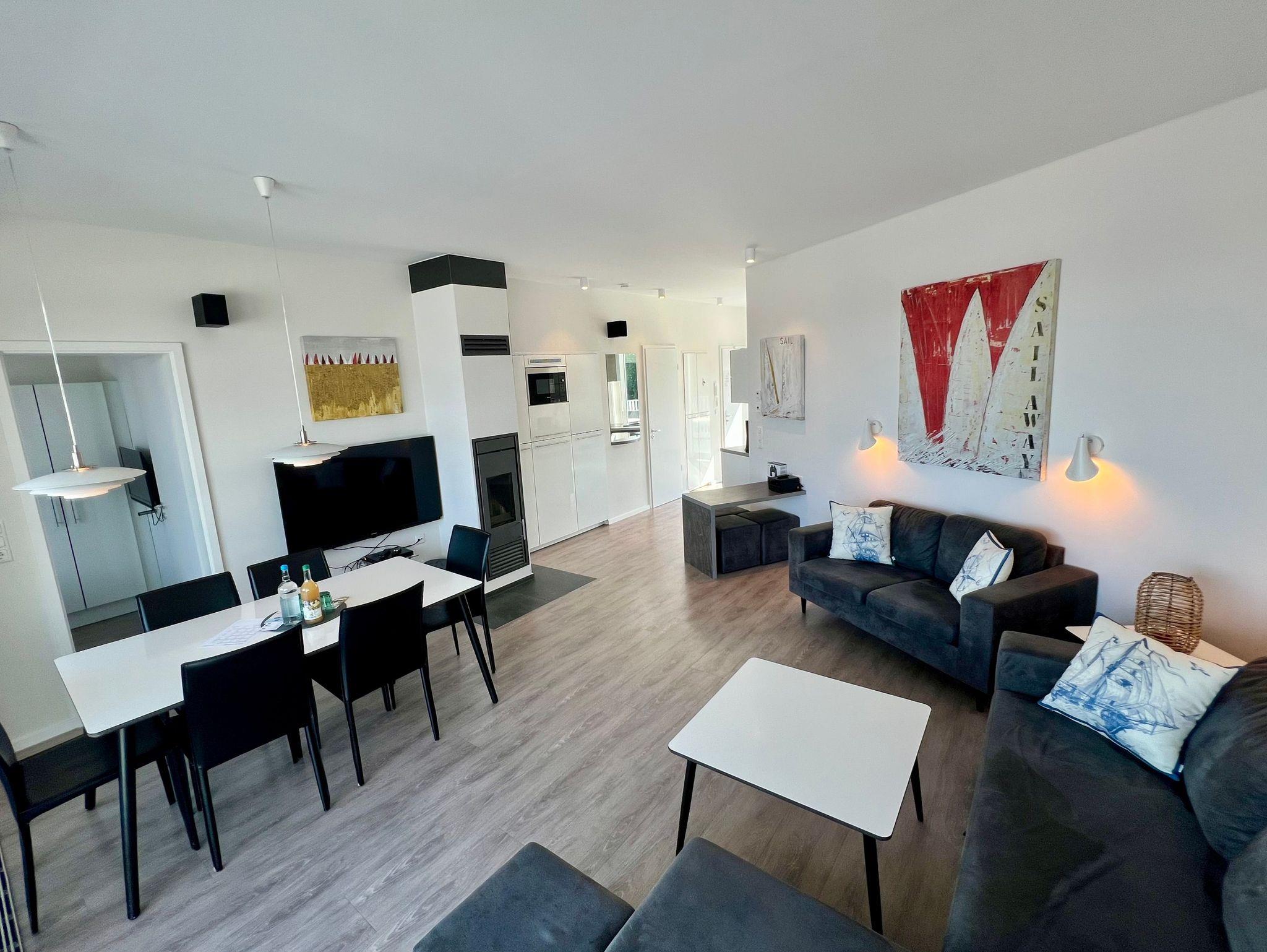Diese exklusive Ferienwohnung bietet nicht nur großzügigen Raum, sondern auch ganztägig Sonne auf zwei großen Terrassen, die zum Entspannen und Genießen der herrlichen Aussicht einladen.