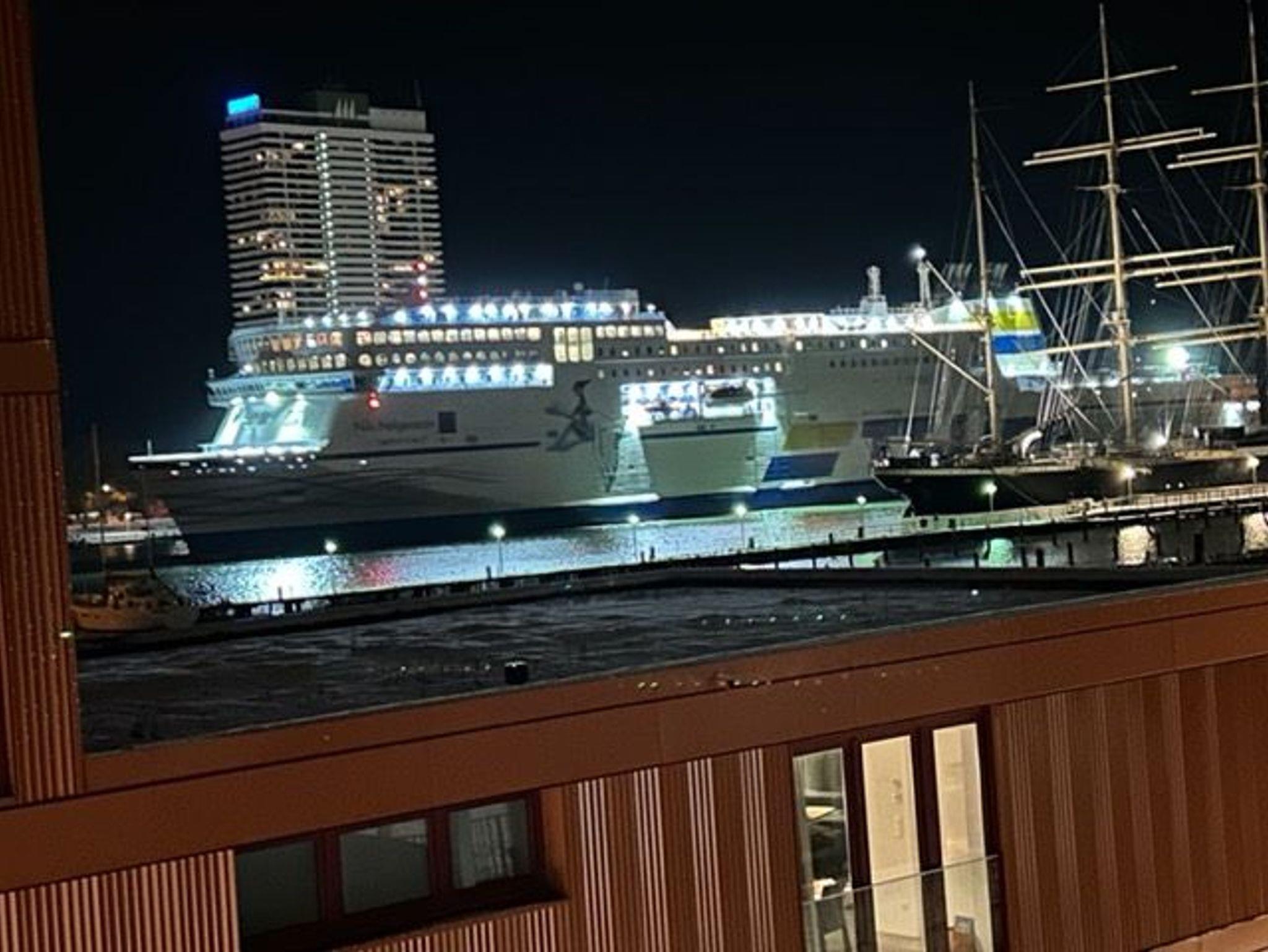 Regendusche. Im Wohnbereich sorgen am Abend die Flammen des Bioethanolkamins für eine gemütliche Atmosphäre, ebenso wie die vorbeifahrenden großen Schiffe mit ihrer eindrucksvollen nächtlichen Beleuchtung.
