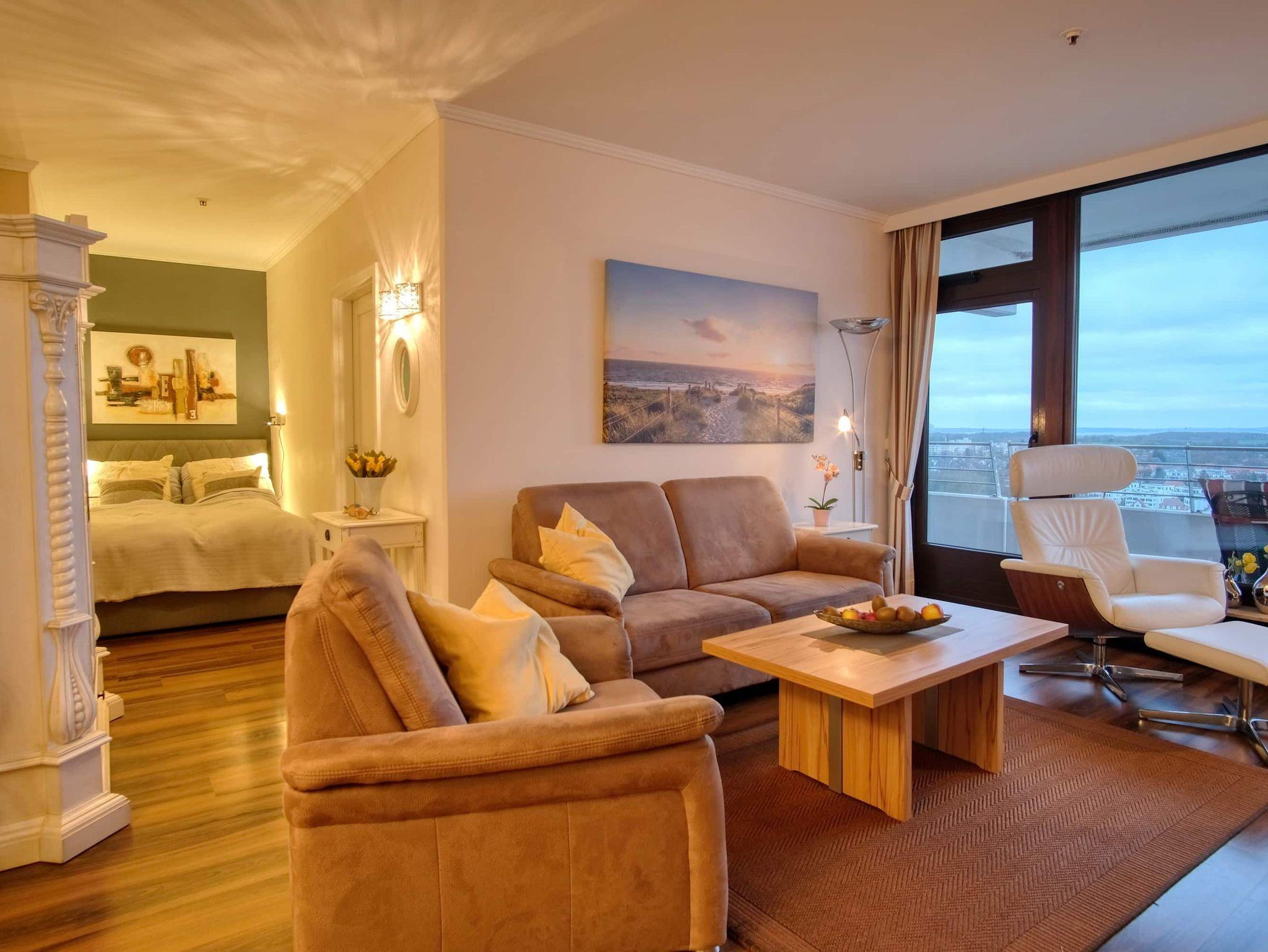 2-Zimmer-Appartement, 16. OG, ca. 64 m² mit Meerblick.