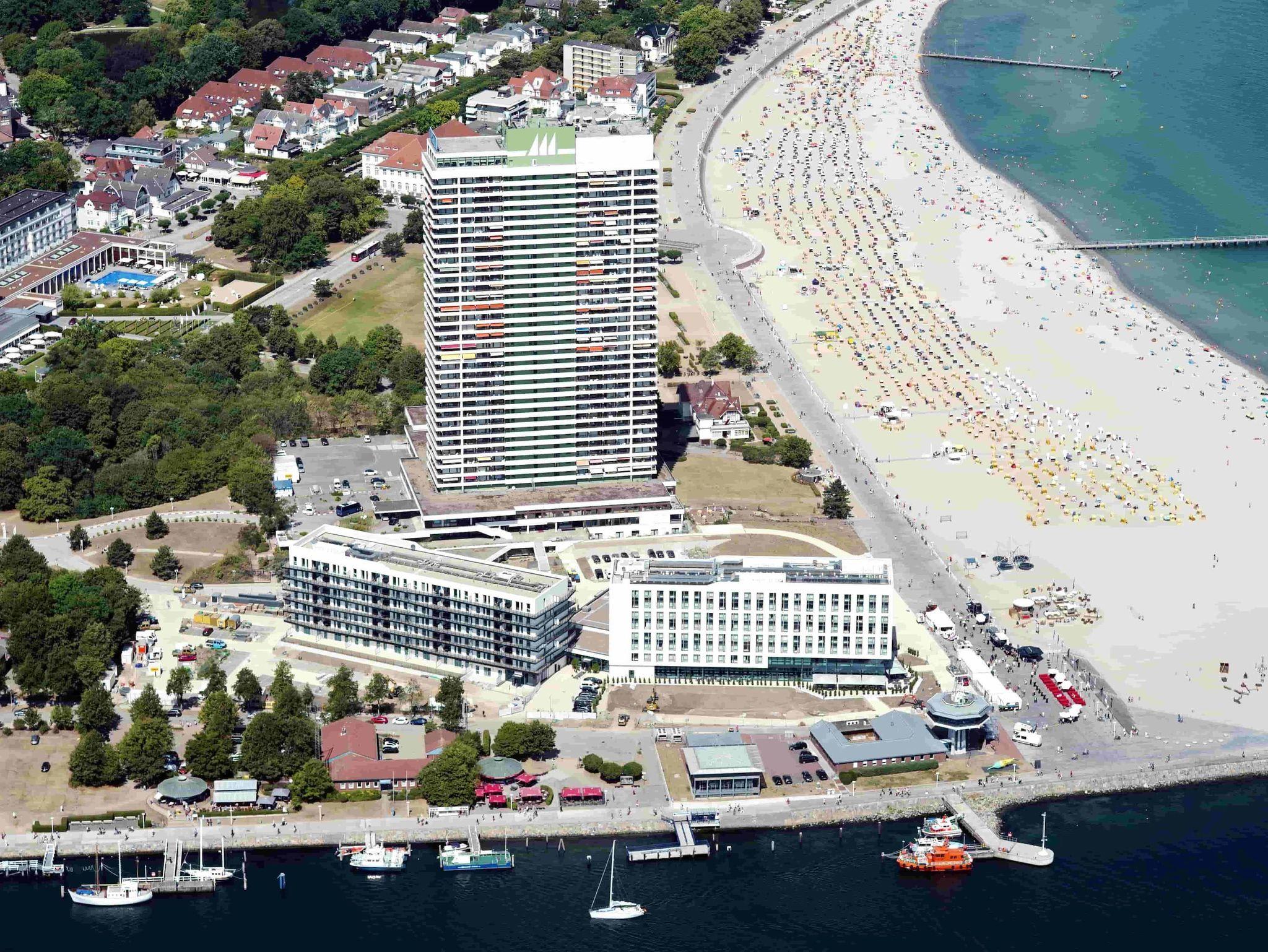 Dieses elegante, exklusive Appartement entspricht höchsten Ansprüchen und lädt sofort zum Wohlfühlen ein. Im sehr geschmackvoll eingerichteten Wohnbereich befinden sich eine gemütliche zweiteilige Couchgarnitur mit Tisch, eine moderne Vitrinen Wohnwand und eine Essecke neben der neuen Küche. Des Weiteren befindet sich separat in der Wohnraumnische eine hochwertiges Doppelbett (140 cm x 200 cm). Im schönen Schlafzimmer stehen ein bequemes Doppelbett (2x 90 cm x 200 cm) und ein großzügiger Kleiderschrank. Das moderne, helle Duschbad geht vom Flur ab. Schicke Accessoires verleihen diesem farblich abgestimmten Appartement ein ganz besonderes Ambiente. Den großen Balkon erreichen Sie von beiden Zimmern. Hier genießen Sie einen fantastischen Blick auf den Strand und die Lübecker Bucht.