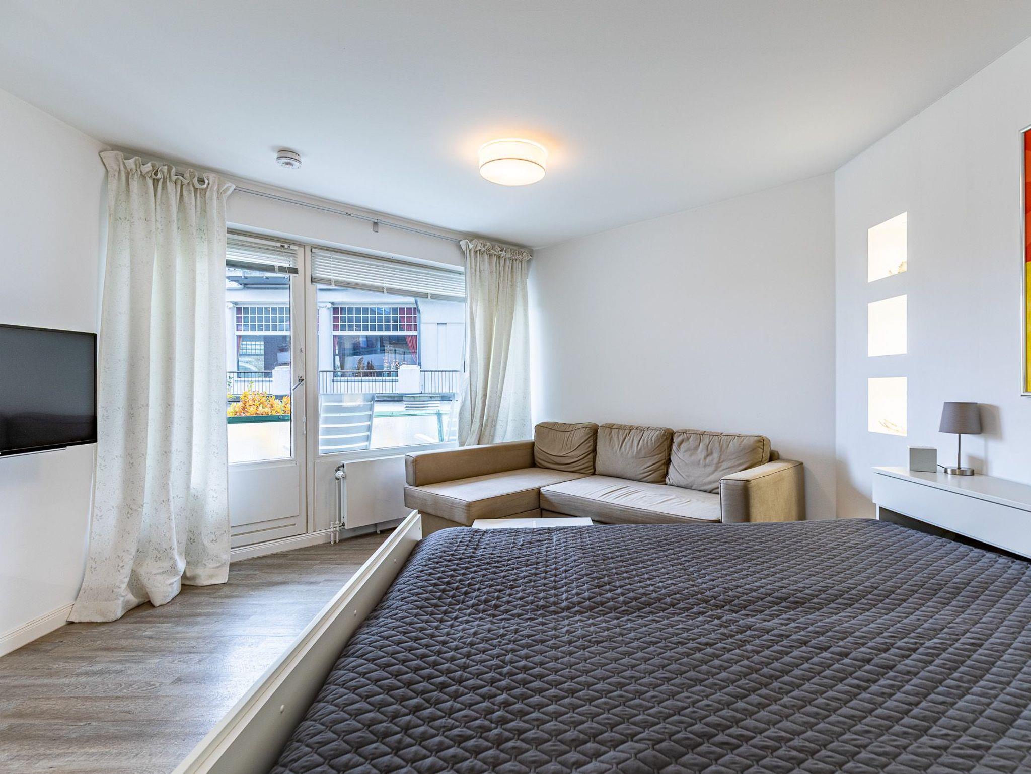 Balkon, Markise, Küchenzeile, Geschirrspüler, Mikrowelle, Duschbad/WC, Fön, (Waschmaschine und Trockner im Haus), TV, Radio, kostenl. W-Lan, Aufzug.