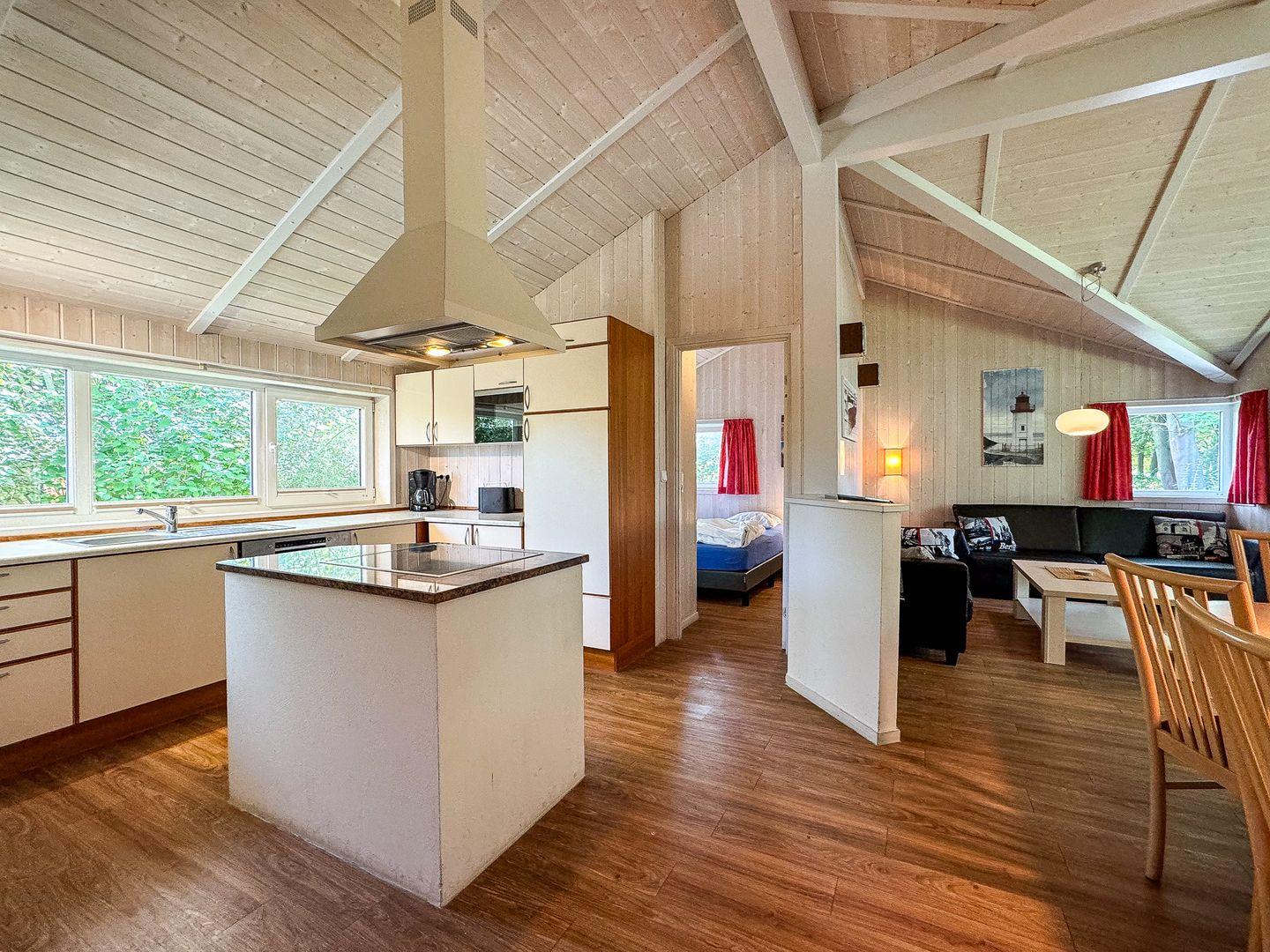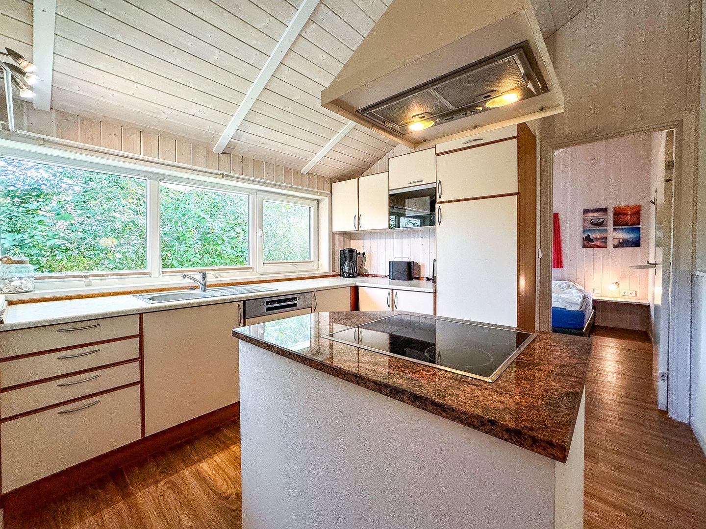 Die Kücheninsel schafft eine lässige Stimmung innerhalb des Ferienhauses. Hier findest Du alles, was Du für die Zu- und Nachbereitung leckerer Mahlzeiten benötigst: