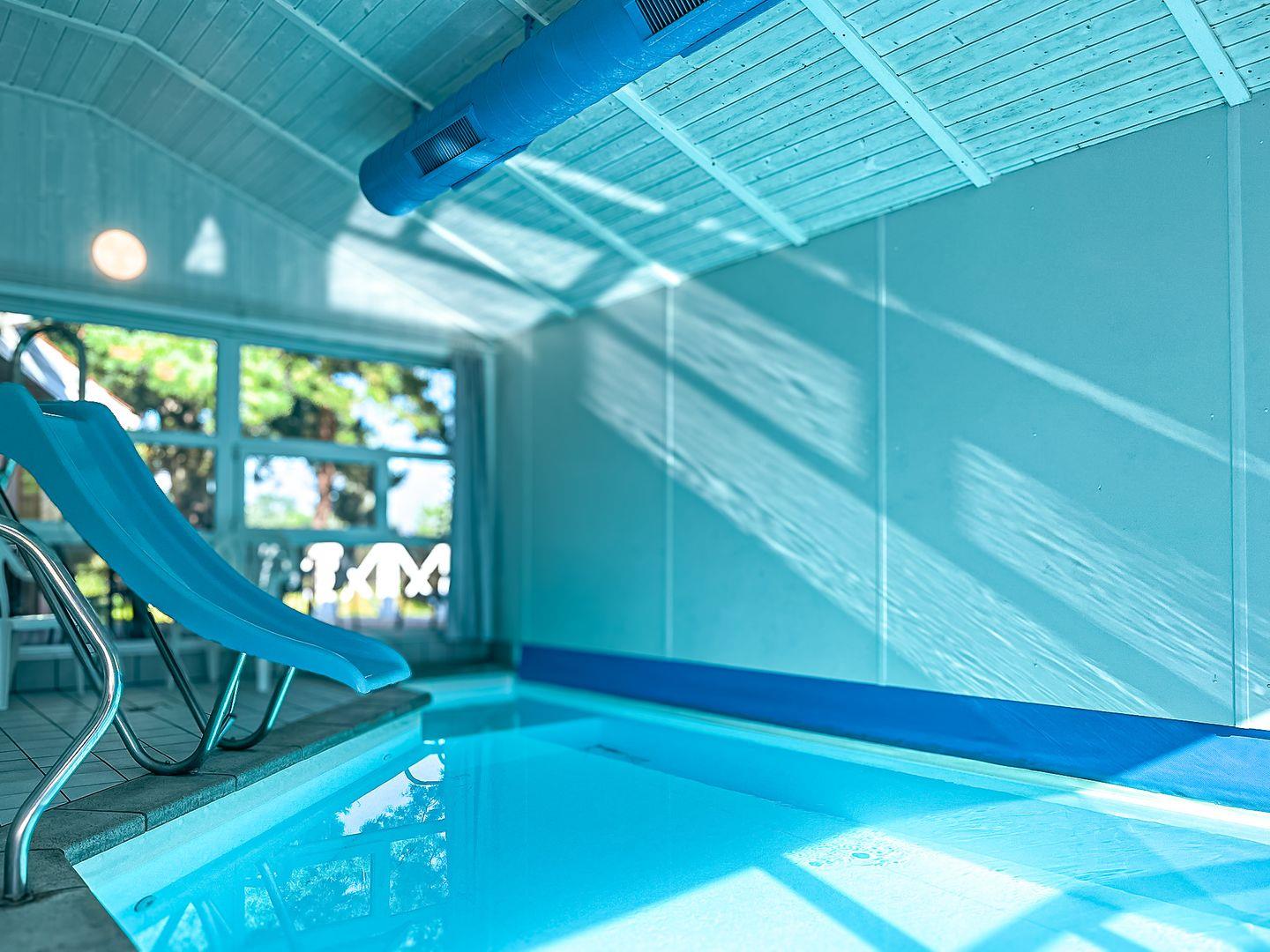 Ein großer Indoor-Pool mit Rutsche, Whirlpool und Sauna garantieren Dir wetterunabhängig einen großartigen Familienurlaub!