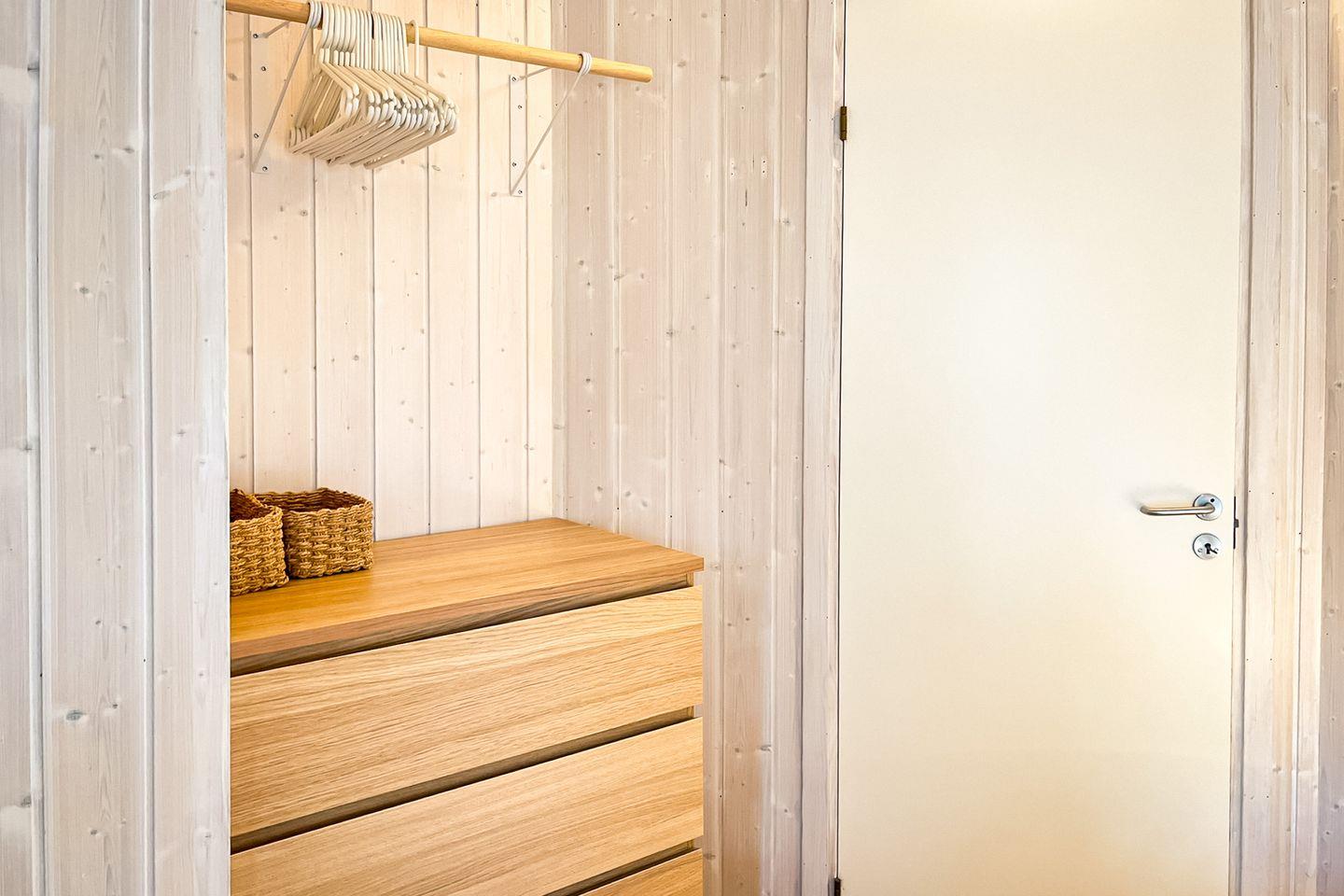 Zwei Schlafzimmer sind mit zwei Einzelbetten (je 80 x 200) ausgestattet, die zu Doppelbetten zusammengeschoben sind. Das dritte Schlafzimmer ist mit 2 getrennten Einzelbetten (80 x 200) ausgestattet. Jedes Schlafzimmer bietet einen geräumigen Kleiderschrank für deine Urlaubsgarderobe.