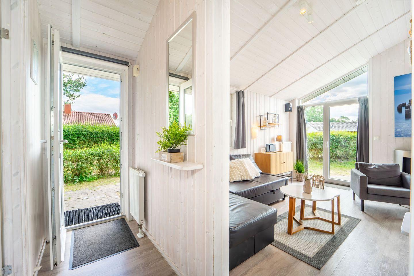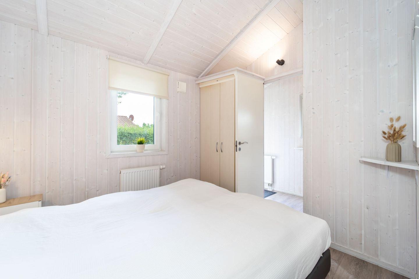 Das Haus verfügt über zwei Schlafzimmer, die jeweils mit einem Doppelbett ausgestattet sind. Robuste Vinylböden sorgen für ein helles und pflegeleichtes Wohnklima.