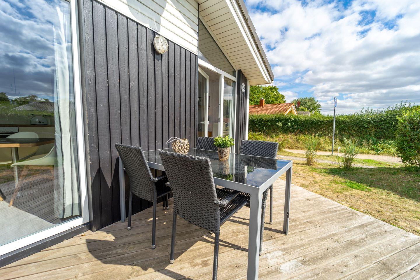 Nach einem Tag am Meer sorgt die eigene Sauna für wohltuende Entspannung. Auf der möblierten Terrasse genießt Du den Blick ins Grüne, während Sonnenliegen, Sonnenschirm und ein Holzkohlegrill zu gemütlichen Stunden im Freien einladen.