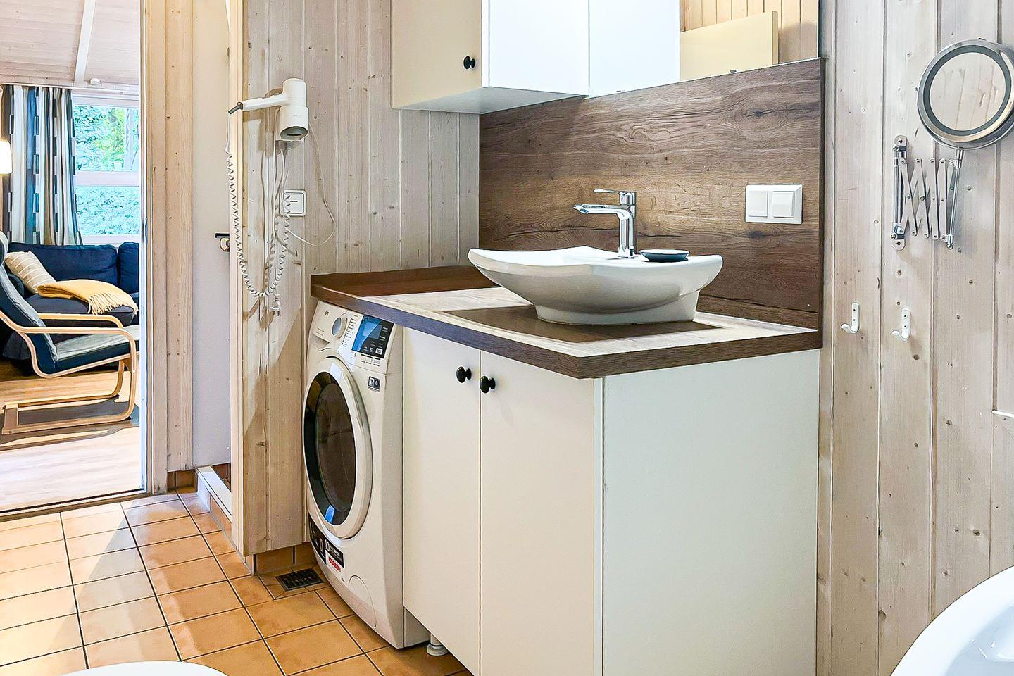 Spülmaschine und Waschmaschine sind vorhanden.