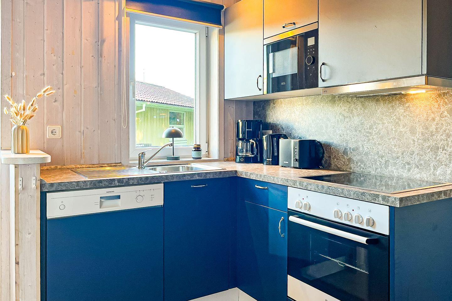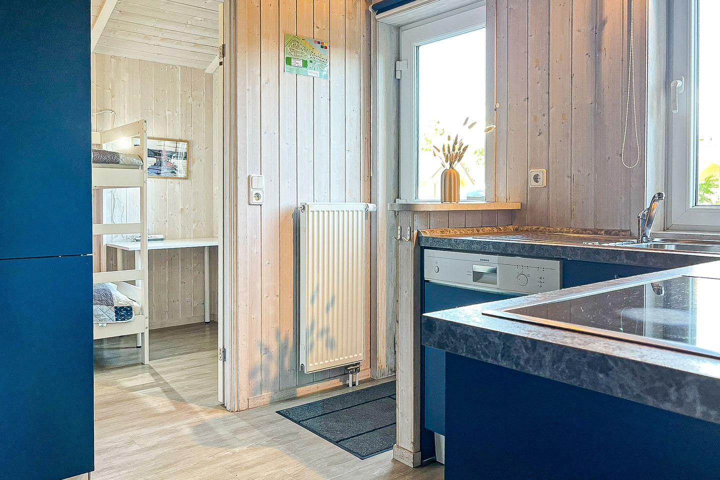 Die Kücheninsel ist gut ausgestattet und bildet den Mittelpunkt im Wohnbereich. Unter anderem findest Du hier folgende Ausstattung: