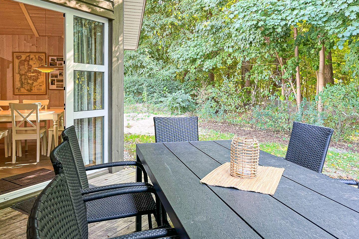 Das Ferienhaus 03 in ruhiger Lage bietet auf 86 m² Platz für bis zu 6 Personen. Es verfügt über drei Schlafzimmer, ein Wohnzimmer mit offener Küche, ein Bad mit Sauna und Whirlwanne und eine Terrasse mit Gartenblick. Haustiere sind willkommen (max. 2). Der Sandstrand ist nur 300 Meter entfernt. WLAN, Kaminofen und Privatparkplätze gehören ebenso zur Ausstattung.