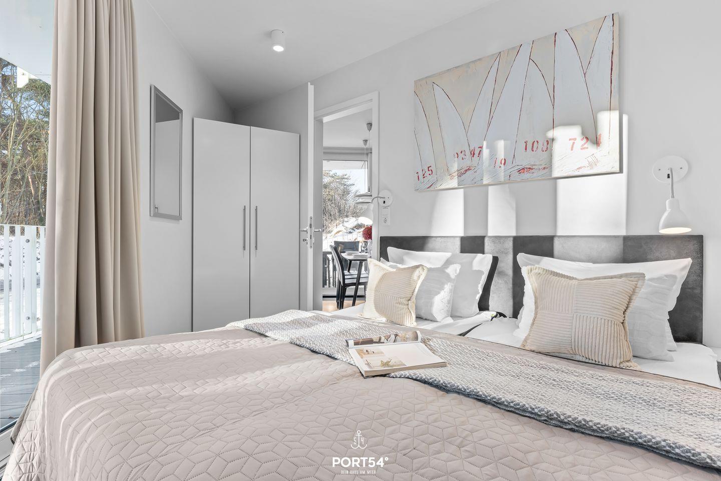 Die Wohnung befindet sich im Obergeschoss einer Dünenvilla mit Holzfassade und kombiniert moderne Ausstattung mit stilvoller, wohnlicher Atmosphäre. Zwei separate Schlafzimmer mit Doppelbetten (180x200?cm) und getrennten Matratzen bieten Privatsphäre. Im Wohnbereich gibt es zwei weitere Schlafplätze (80x200?cm) auf einem ausziehbaren Schlafsofa, rechtwinklig zueinander angeordnet.