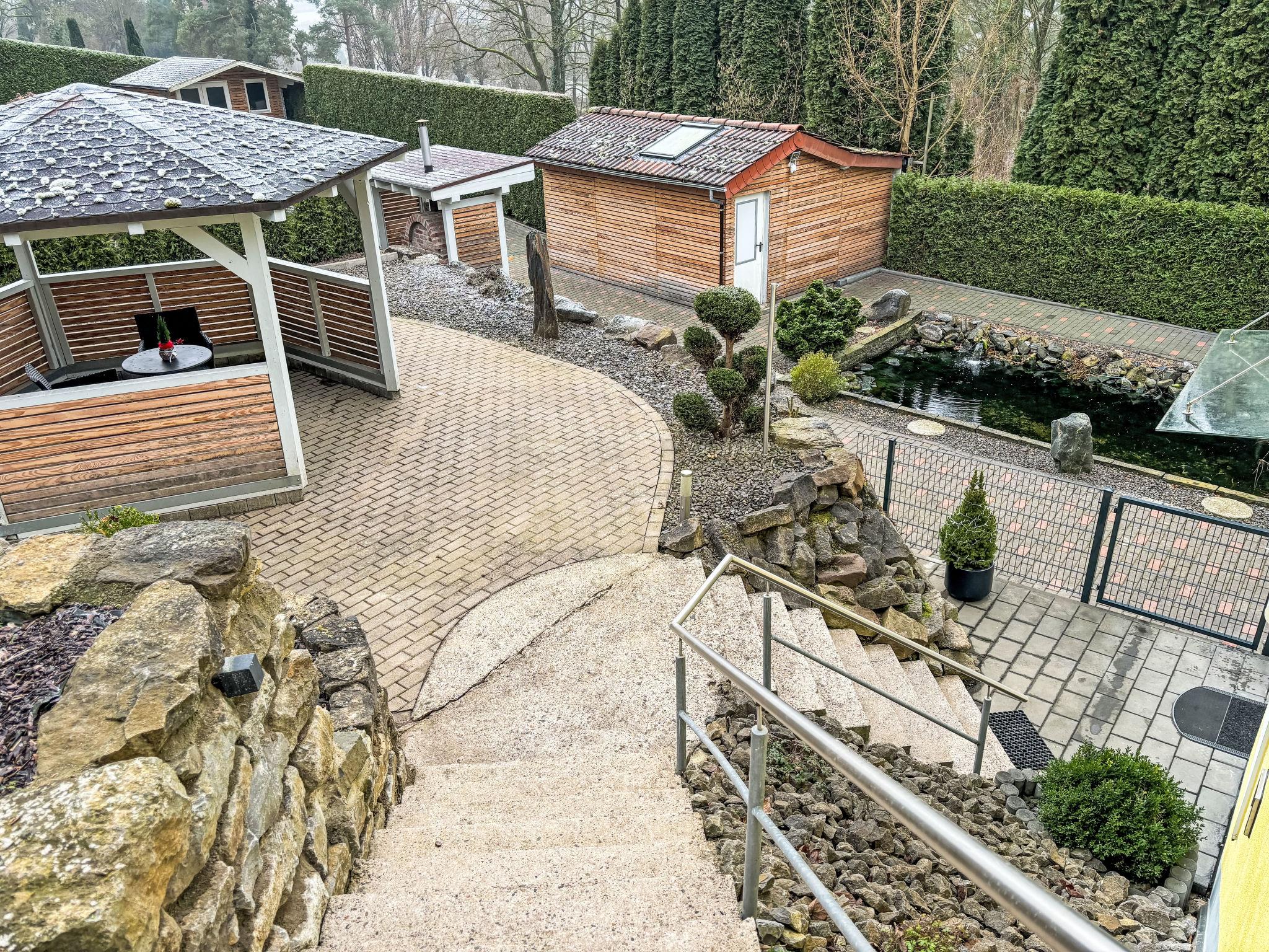 Modern 3-family house semi-detached, surrounded by trees and meadows. Above Lügde (Altstadt), on the outskirts, 800 m from the centre, in a quiet position on a slope, 100 m from the edge of the forest, 8 km from the lake, 1 km from the river, in a cul-de-sac. Stepped path (18 steps) to the house. Parking on the premises. Shop 1 km, grocery 1 km, supermarket 1 km, restaurant 800 m, bakery 1 km, café 800 m, bus stop 300 m, railway station "Lügde" 300 m, outdoor swimming pool 3 km, indoor swimming pool 5 km, thermal baths 5 km, lake Schiedersee 8 km. Golf course (18 hole) 1.5 km, walking paths from the house 200 m. Nearby attractions: Stadtmauer, Wehrtürme, Altstadt Lügde, Schloss Hämelschenburg 12 km, Externsteine Bad Meinberg 30 km, Hermannsdenkmal 40 km. Please note: car recommended.