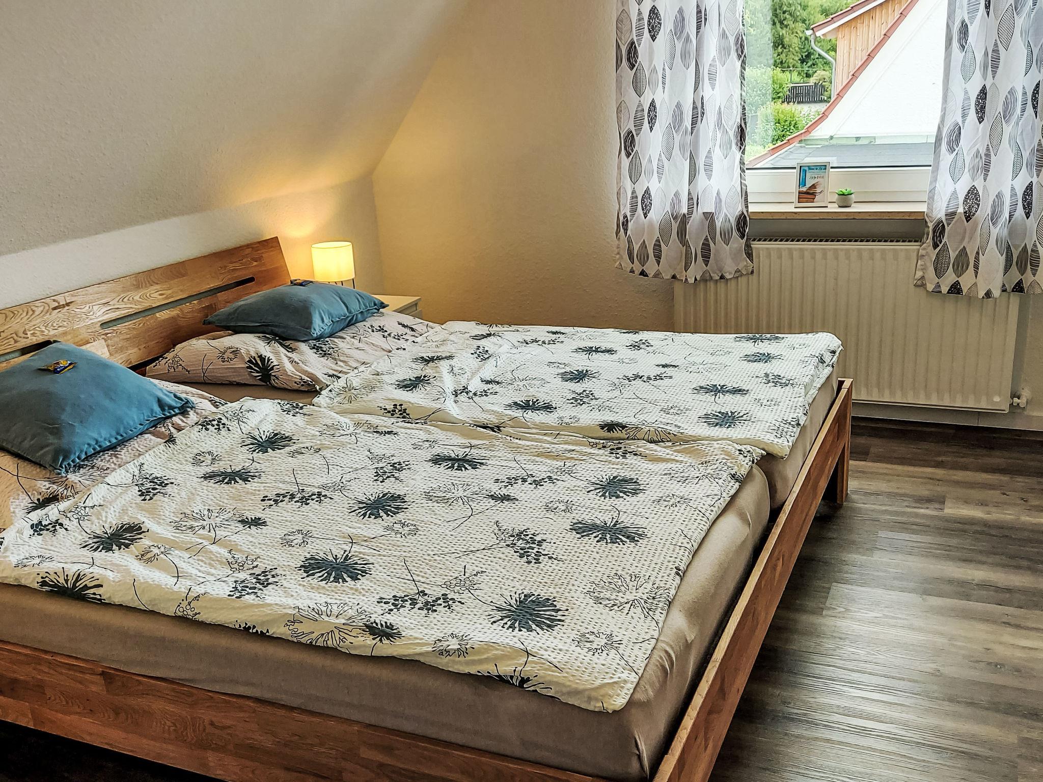 3-room apartment 80 m2 on 1st floor. Modern and cosy furnishings: living/sleeping room with 1 sofabed, satellite TV and flat screen. Exit to the balcony. 1 room with 2 beds (90 cm, length 200 cm). 1 room with 1 double bed (180 cm, length 200 cm). Kitchen (4 ceramic glass hob hotplates, toaster, microwave, freezer, electric coffee machine) with dining table. Shower/WC. Oil heating. Balcony 12 m2. Balcony furniture, box-room. Beautiful view of the countryside. Facilities: children's high chair, baby cot. Internet (WiFi, free). Parking at the house. Please note: non-smokers only. Maximum 2 pets/ dogs allowed. Smoke alarm, fire extinguisher.