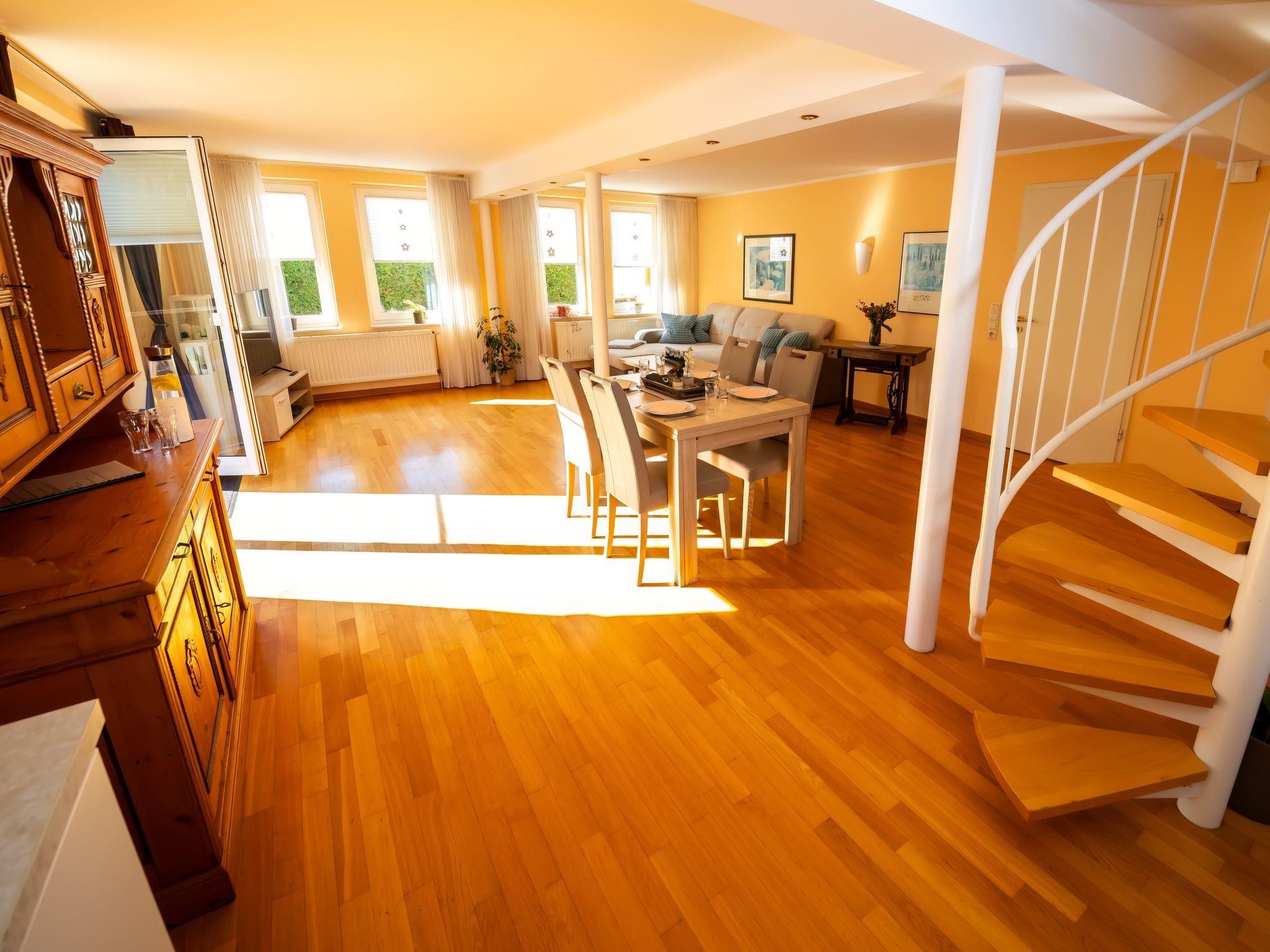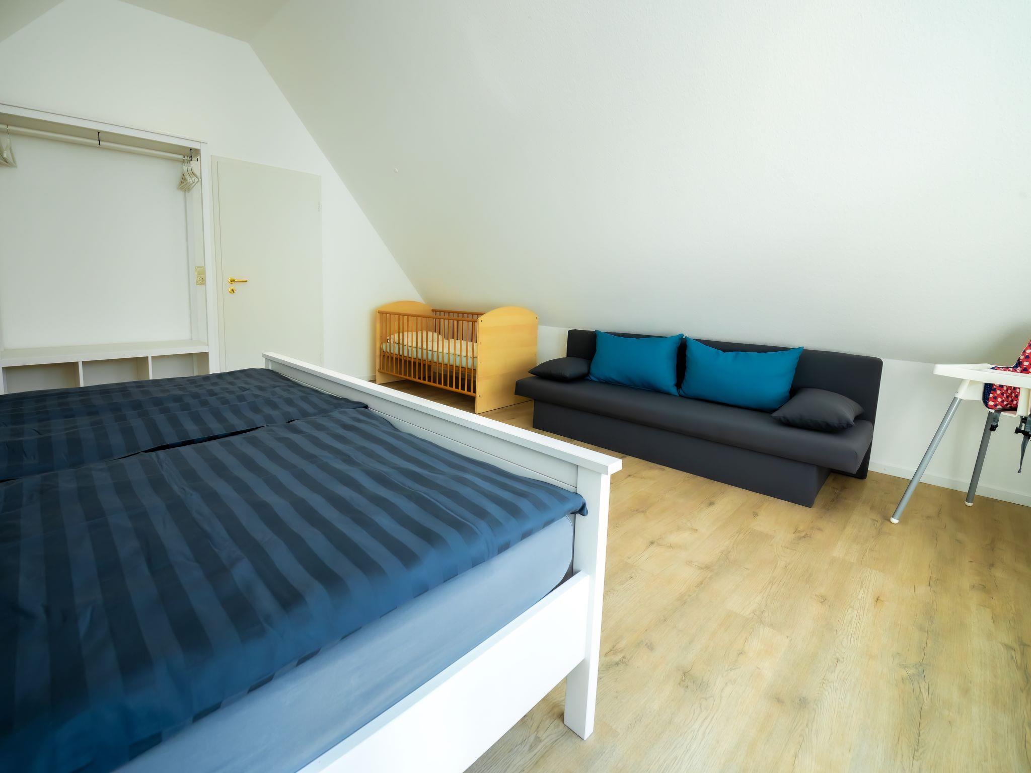 2-room semi-detached house 120 m2 on 2 levels. Comfortable and cosy furnishings: living/dining room with 1 double sofabed (140 cm, length 200 cm), satellite TV (flat screen), radio. Exit to the terrace. Open kitchen (oven, 4 ceramic glass hob hotplates, toaster, kettle, microwave, freezer, electric coffee machine). Sep. WC. Upper floor: (spiral staircase), 1 room with 1 double sofabed (130 cm, length 180 cm), 1 double bed (200 cm, length 200 cm). Shower/WC. Gas heating. Wooden floors, carpet. Terrace 20 m2. Terrace furniture, barbecue, deck chairs (2), box-room. Facilities: baby cot. Internet (WiFi, free). Please note: non-smoking house. Maximum 2 pets/ dogs allowed. Private entrance, smoke alarm.