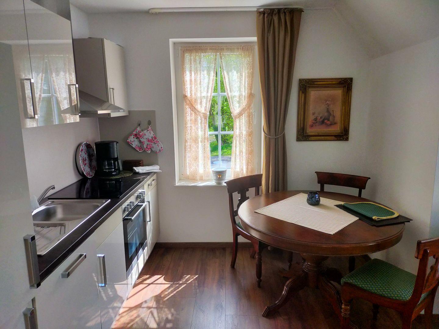 Herzlich Willkommen in der Ferienwohnung Johanna in der Ortschaft Lütetsburg. Über einen separaten Eingang kommen Sie in die helle Oberwohnung. Der gemütliche Wohnbereich versprüht durch seine Ausstattung einen besonderen Charme. Auf der bequemen Couch können Sie sich durch die kleine Bibliothek schmökern oder sich spannende Filme am Flachbild-TV anschauen. In der neuwertigen Küche kann sich der Hobbykoch austoben und ostfriesische Speisen zubereiten, die er dann am runden Esstisch servieren kann. Ein separates Schlafzimmer mit Doppelbett (mit hochwertigen Daunendecken) steht zum Träumen und Erholen bereit. Bettwäsche und Handtücher sind inklusive. Nebenan befindet sich das helle moderne Bad mit ebenerdiger Dusche. Die ganze Wohnung ist mit Fußbodenheizung ausgestattet.