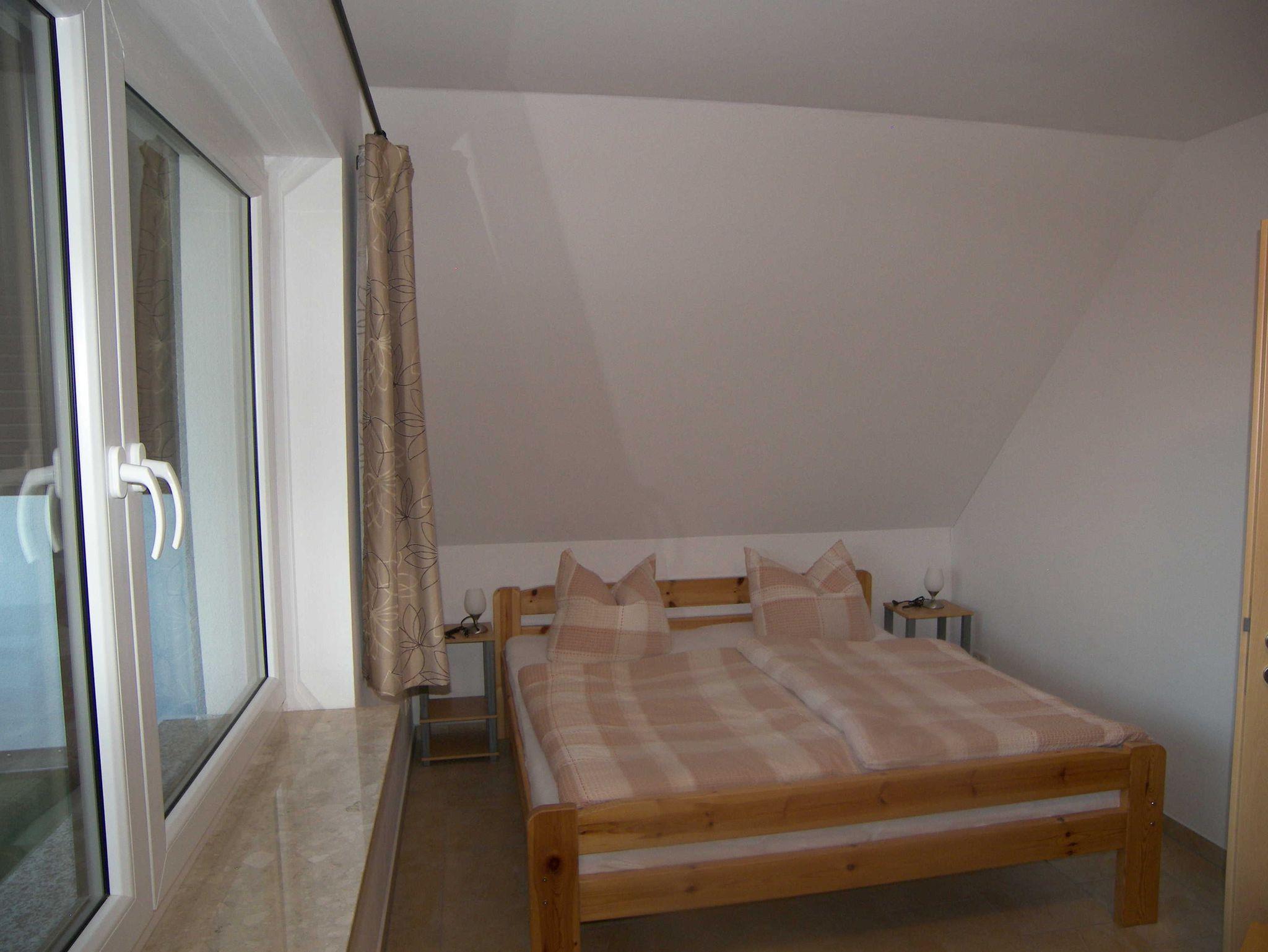 Im Obergeschoss befinden sich zwei Schlafzimmer, ein Schlafzimmer mit Doppelbett sowie angrenzendem Balkon und das zweite Schlafzimmer mit Doppelbett und einer zusätzlichen Couch, die als Aufbettungsmöglichkeit genutzt werden kann. Das Badezimmer im Obergeschoss verfügt ebenfalls über Dusche und WC.