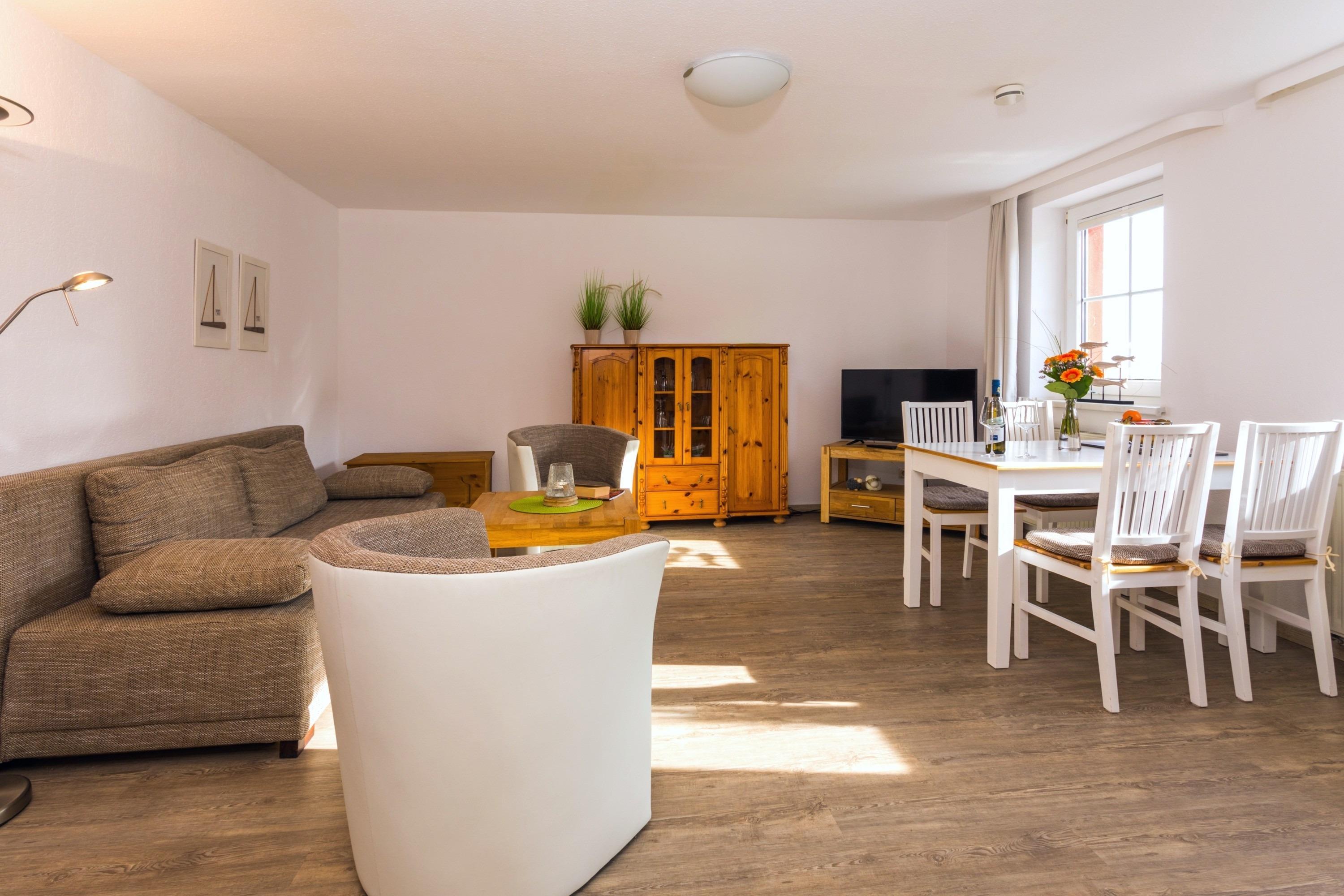 Die Ferienwohnung hat einen Schlafraum, einen kombinierten Wohn-/ Schlafraum und kann mit bis zu 4 Personen bewohnt werden.