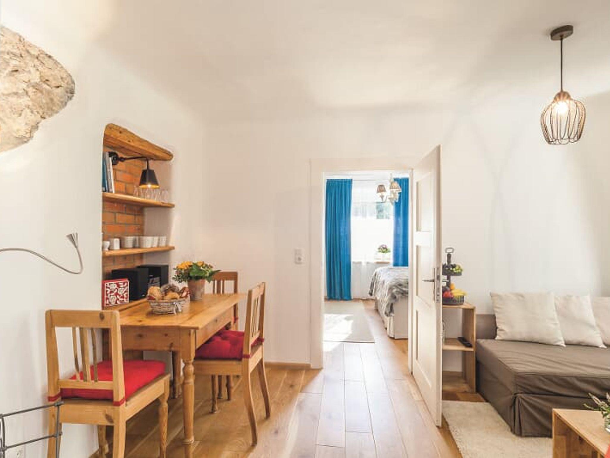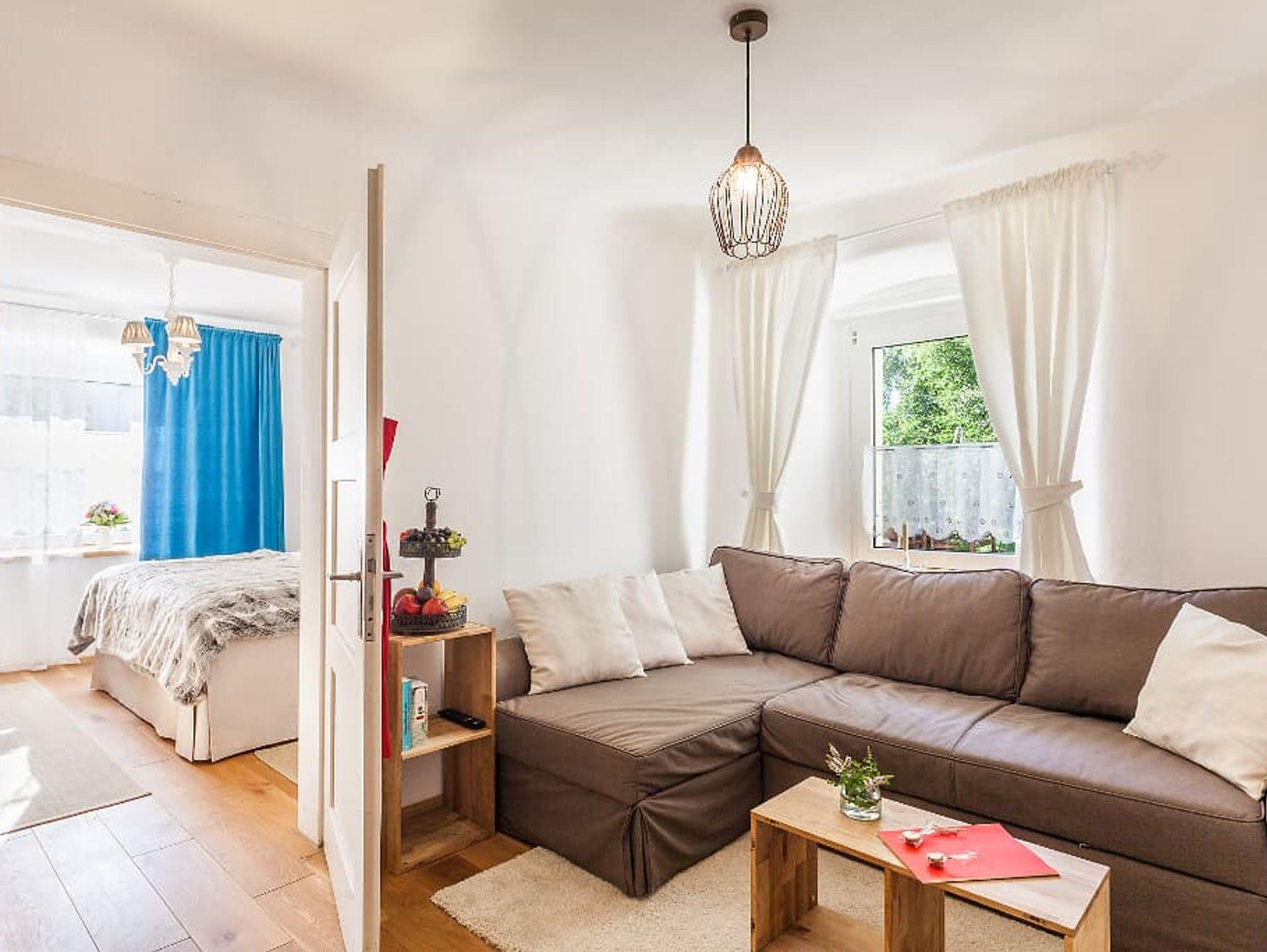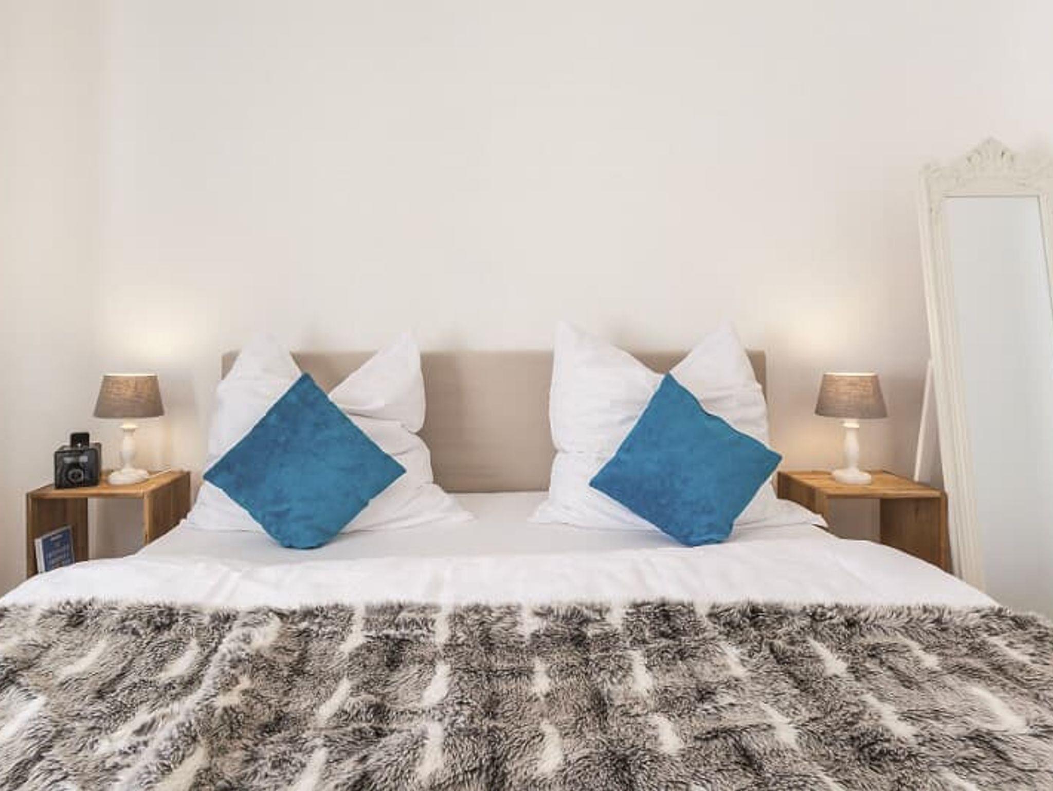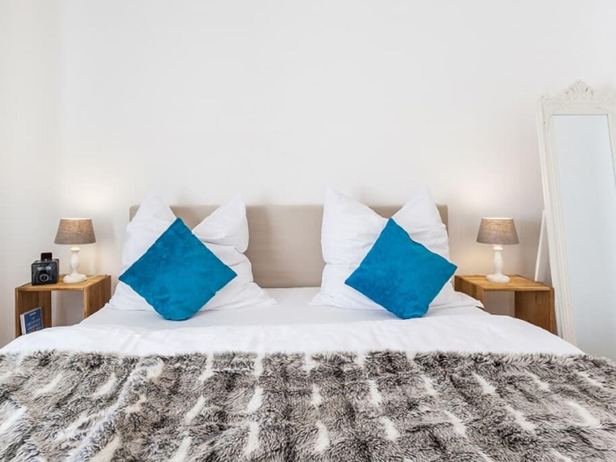 Die Wohnung ist für zwei Personen ausgelegt. Ein hochwertiges Boxspringbett sorgt für erholsamen Schlaf und kann auf Wunsch auch getrennt gestellt werden. Für einen weiteren Erwachsenen oder bis zu zwei Kinder steht eine komfortable Schlafcouch bereit.