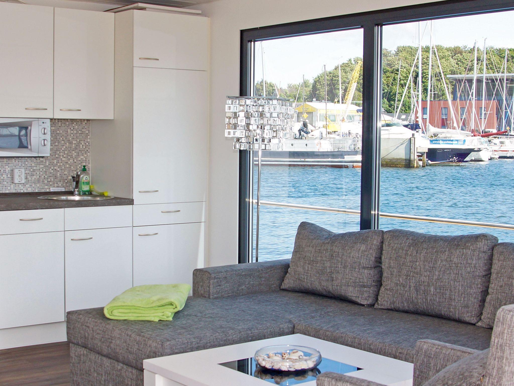 Das Floating House 2 ist dein maritimes Zuhause auf Zeit mitten in der modernen Baltic-Bay-Marina im Ostseebad Laboe und mit herrlichem Blick über die Kieler Förde. Mit 44m² Wohnfläche, zwei Schlafzimmern mit Doppelbetten (160x200) und Platz für bis zu 4 Personen ist dieses hundefreie Hausboot ideal für Paare oder Familien, die Ruhe, Komfort und das Flair des Hafens miteinander verbinden möchten. Im lichtdurchfluteten Wohnbereich erwartet dich eine bequeme Eck-Couch, ein Essplatz und eine integrierte Küche, die alles bietet, was du für entspannte Urlaubstage brauchst: Mikrowelle, Spülmaschine, Ceranfeld (2-flammig), Kühlschrank mit Gefrierfach, Kaffeemaschine, Toaster, Wasserkocher und natürlich ausreichend Geschirr. Das Badezimmer ist funktional und praktisch aufgeteilt mit separatem Duschbad und WC mit Waschtisch. Am Bug des Hausbootes wartet eine 15m² große Terrasse, möbliert und ideal für dein Frühstück im Freien oder entspannte Hafenblicke. Das wahre Highlight aber ist das Sonnendeck auf dem Dach mit 25m² zusätzlicher Fläche, um die Weite der Förde, das maritime Treiben und die klare Ostseeluft ganz in Ruhe zu genießen. Zur Ausstattung gehören ein TV, DVD-Player, Radio und CD-Player, sowie eine Klimaanlage für angenehme Temperaturen auch an heißen Tagen. Ein kostenfreier Parkplatz befindet sich direkt am Hafen. Für längere Aufenthalte oder frische Urlaubswäsche zwischendurch kannst du außerdem Waschmaschine und Trockner direkt in der Marina gegen eine kleine Gebühr nutzen. Die Vermietung erfolgt saisonal von Frühjahr bis Herbst, in der frostfreien Zeit.